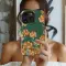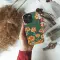 Embrace a touch of retro charm with this delightful 70s-inspired floral design. This pattern features vibrant orange and yellow marigolds, rendered in a bold, illustrative style with distinct outlines. The warm-toned blossoms stand out beautifully against a deep green, dotted background, while the cool blue-green stems add a unique pop of contrast, perfect for anyone who loves vintage patterns and nature-inspired art.