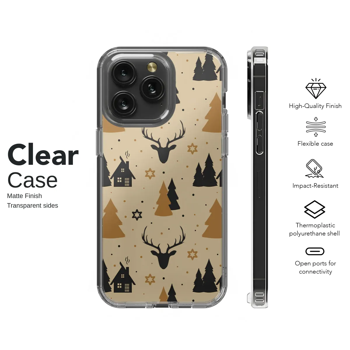 Rustic Christmas Reindeer Forest Pattern Phone Case Cover for iPhone 17 Pro Max 16 15 Plus 14 13 Mini Samsung S25 S24 Google Pixel 10 9 8614
