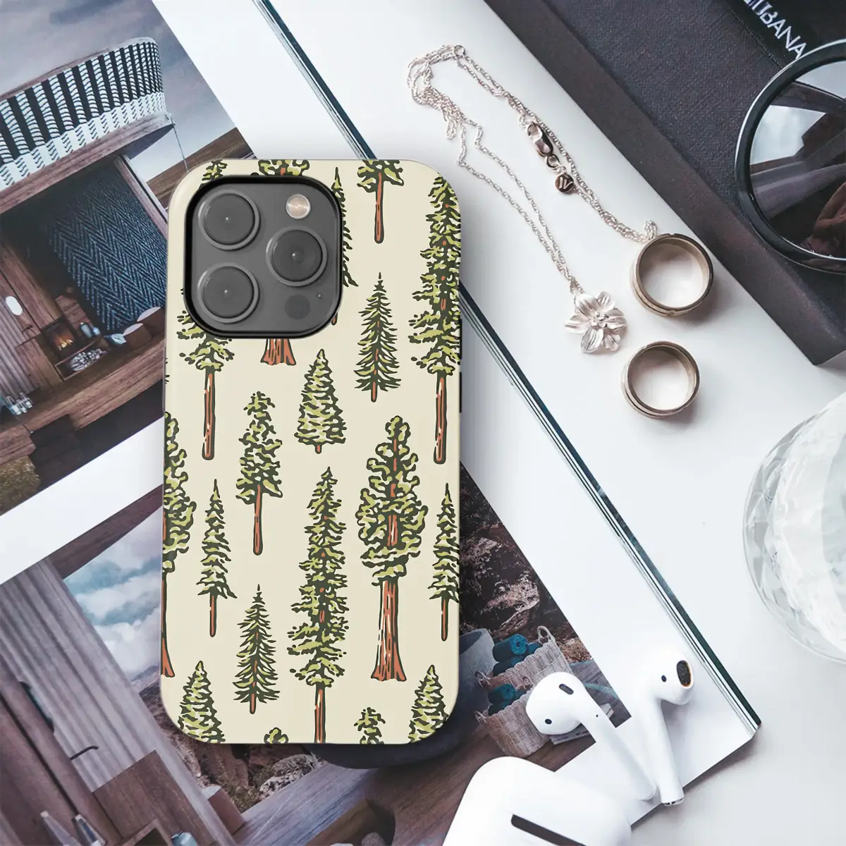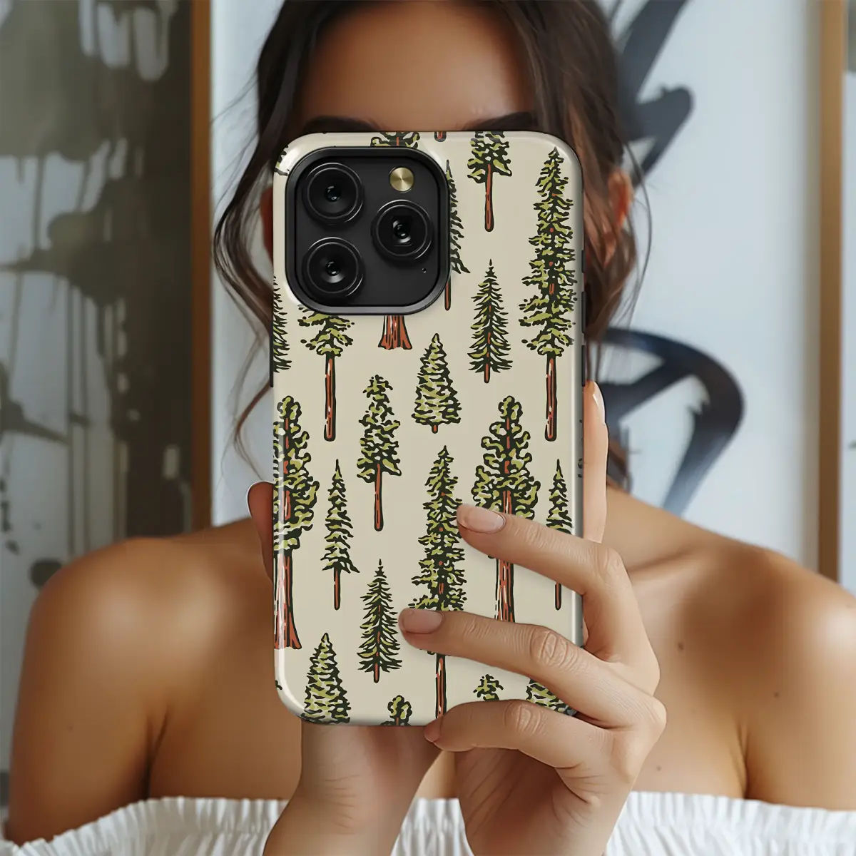 Rustic Pine Tree Forest Woodland Pattern Phone Case Cover for iPhone 17 Pro Max 16 15 Plus 14 13 Mini Samsung S26 S25 Google Pixel 10 9 9753