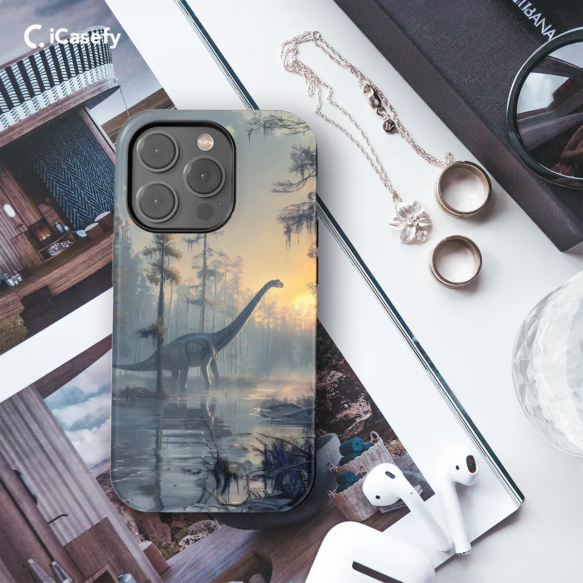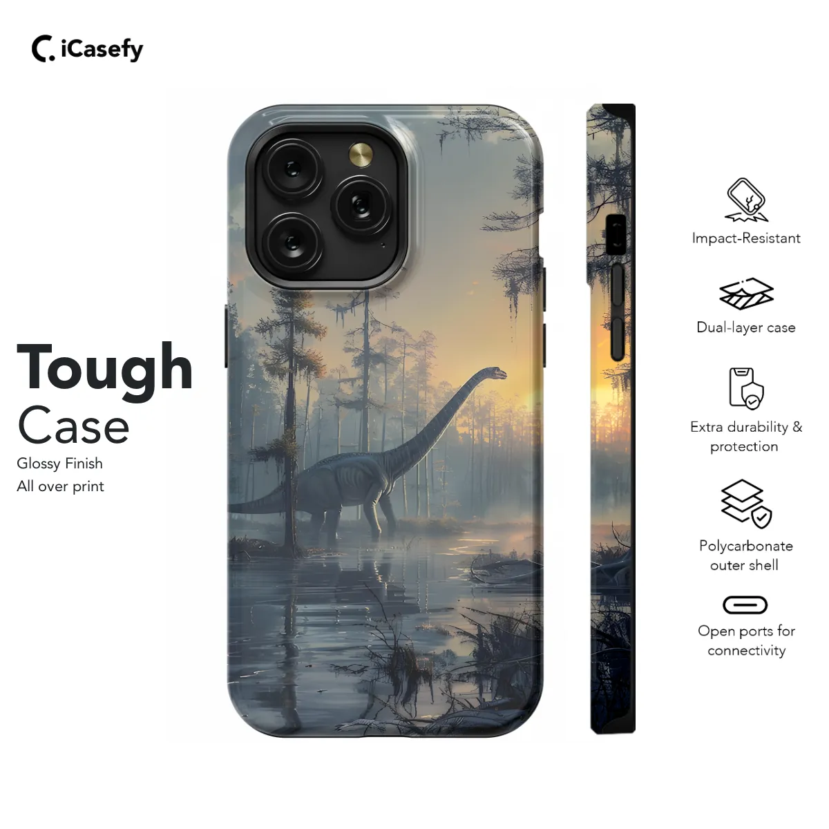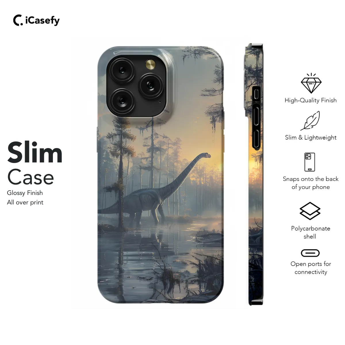 Introducing the ultimate phone case for dinosaur enthusiasts and nature lovers! This exceptional case features a stunning design showcasing a magnificent Sauropod Dinosaur amidst a breathtaking natural setting. Adorned on your iPhone, Samsung, or Pixel device, it transforms your phone into a work of art while providing exceptional protection. The case is crafted to protect your phone from scratches, bumps, and accidental drops. Its perfect fit and responsive buttons ensure seamless functionality. Embrace the ancient wonders of the natural world with this one-of-a-kind Sauropod Dinosaur Phone Case, a captivating fusion of protection and style.