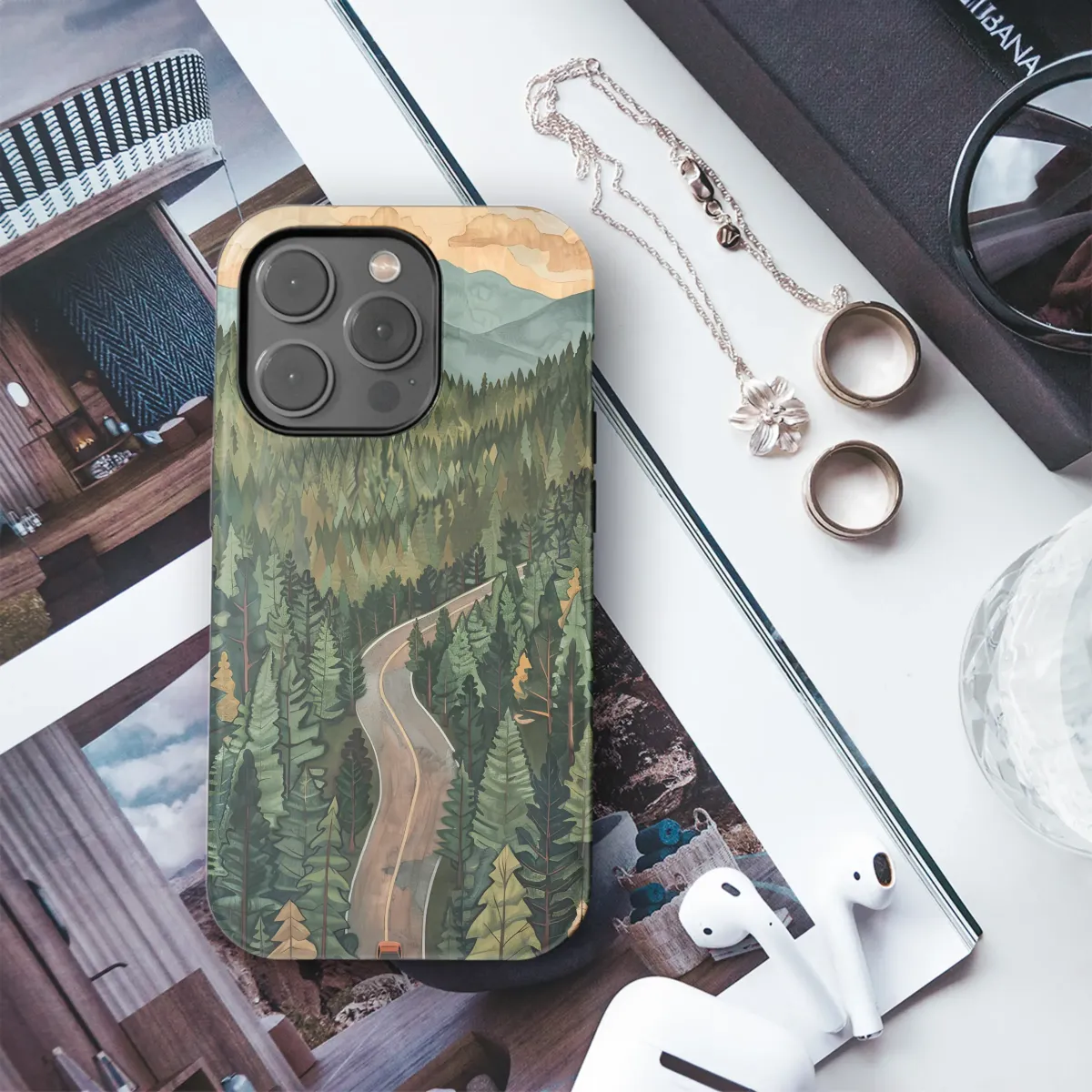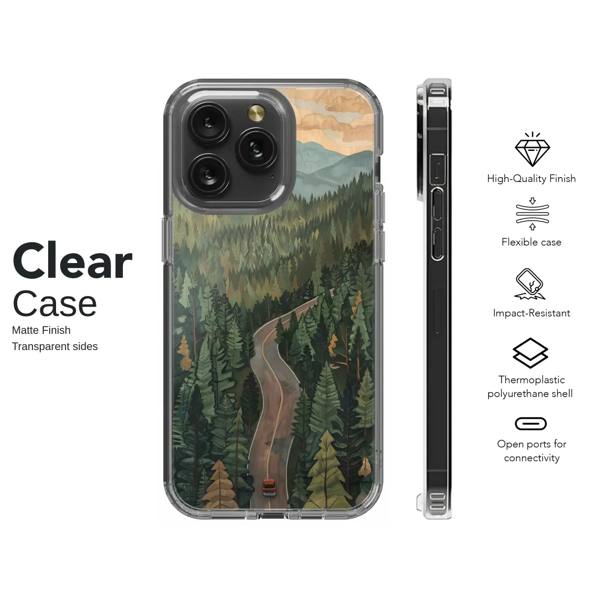 Scenic Forest Drive Mountain Landscape Illustration Phone Case Cover for iPhone 17 Pro Max 16 15 13 Samsung S26 S25 Pixel 9539