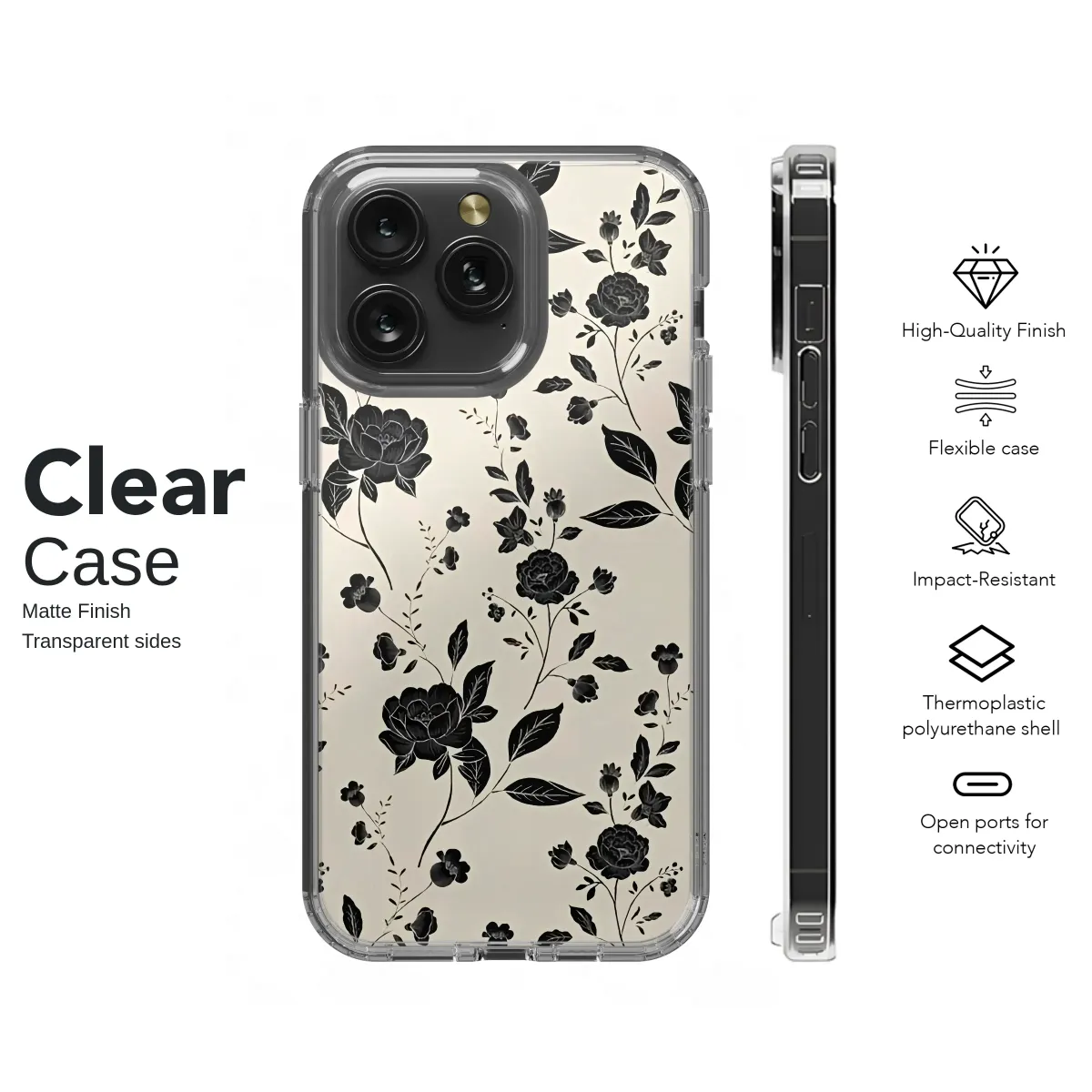 Immerse yourself in the quiet elegance of a moonlit garden with this enchanting floral artwork. A tapestry of delicate black roses, peonies, and wild blossoms unfurls in a graceful dance across a soft, creamy ivory background. The striking contrast between the deep, velvety black silhouettes and the warm, gentle base creates a visual poetry that is both timeless and modern. Each stem and petal is rendered with exquisite, flowing lines, reminiscent of classic botanical illustrations found in antique storybooks. This sophisticated monochrome pattern captures a mood of romantic mystery, perfect for those drawn to dark academia aesthetics, vintage charm, or the simple beauty of nature's forms. Imagine carrying a piece of this secret garden, a design that whispers tales of forgotten romance and serene, starlit nights. It’s more than just an accessory; it’s a statement of refined taste and a personal touch of artistry for your most essential companion. This design transforms the everyday into something truly special, offering a constant reminder of the enduring beauty found in classic, elegant forms. It's the perfect unique gift for a loved one or a sophisticated way to infuse your own style with a touch of artistic flair and poetic grace.