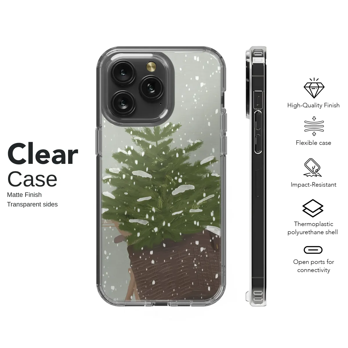 Snowy Bicycle Christmas Tree Illustration Phone Case Cover for iPhone 17 Pro Max 16 15 Plus 14 13 Mini Samsung S25 S24 Pixel 10 9 8316