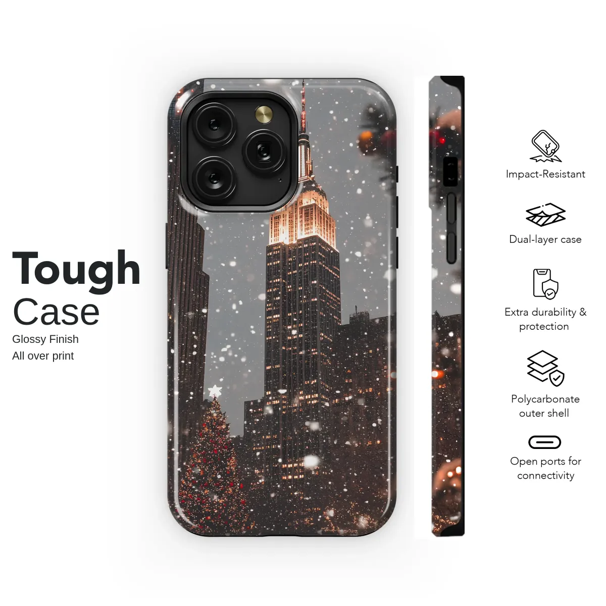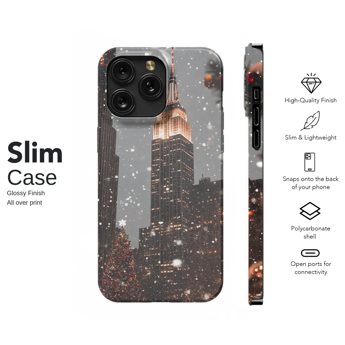 Snowy New York Christmas Cityscape Festive Holiday Design Phone Case Cover for iPhone 17 Pro Max 16 15 13 Samsung S25 S24 Pixel 8848