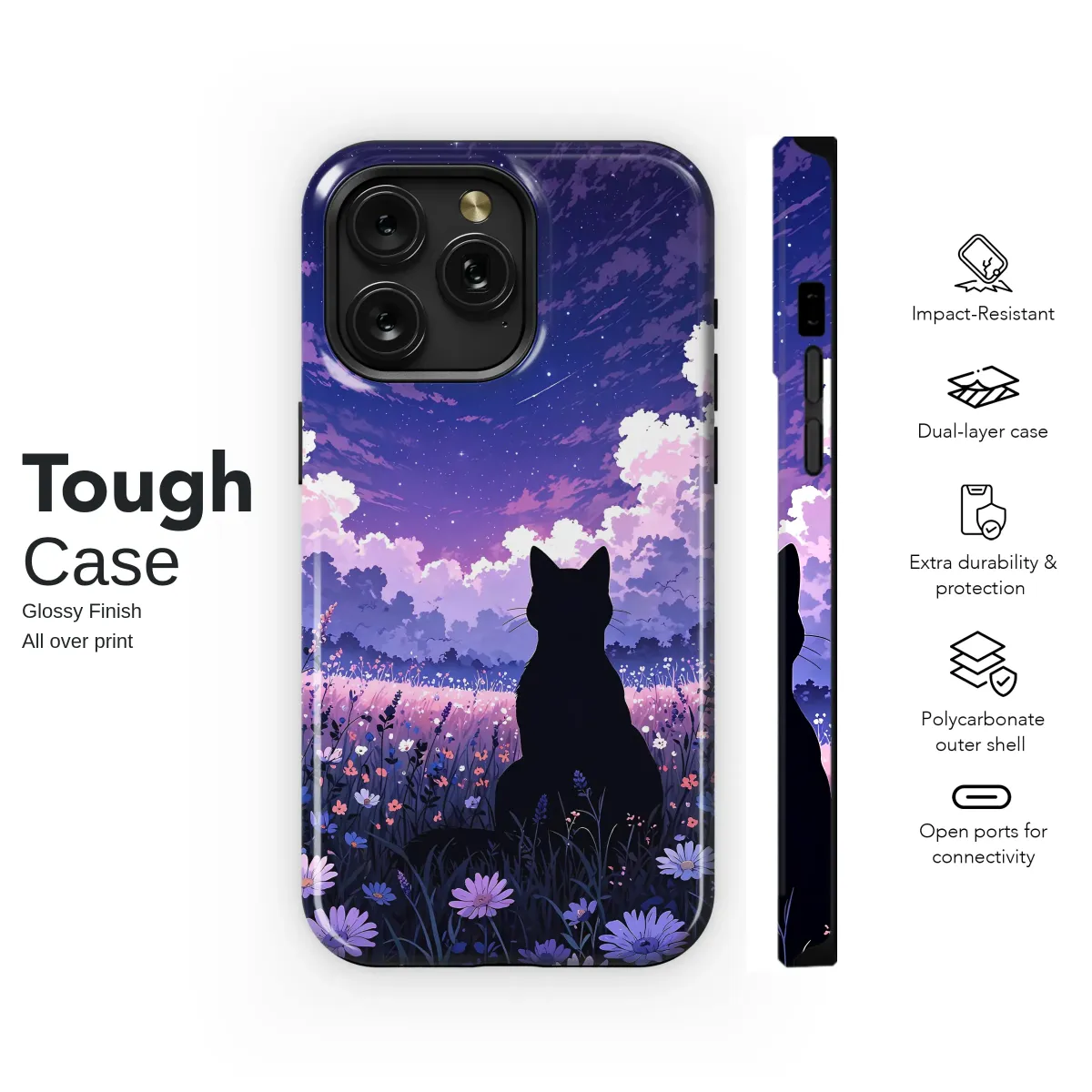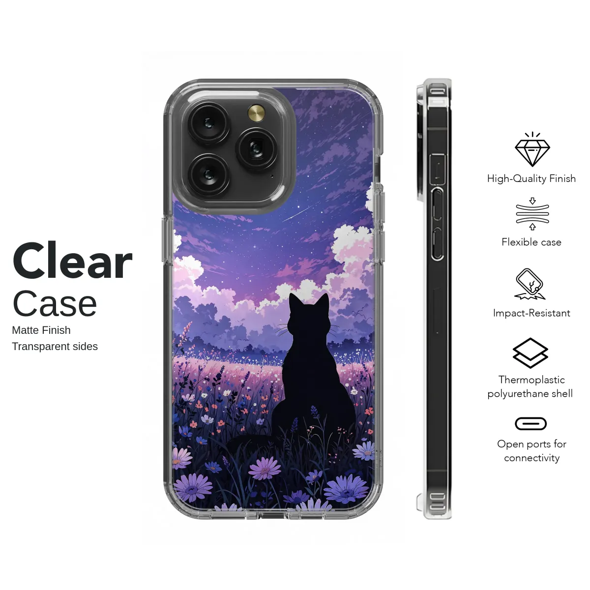 Stargazing Cat Silhouette Anime Night Sky Phone Case Cover for iPhone 17 Pro Max 16 15 Plus 14 13 Mini Samsung S25 S24 Pixel 10 9 8998