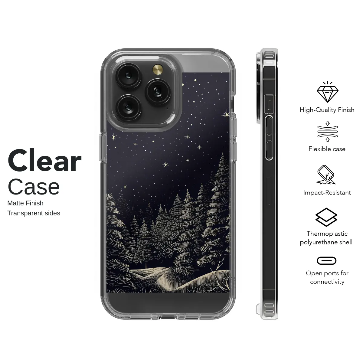 Starry Night Forest Linocut Winter Scene Illustration Phone Case Cover for iPhone 17 Pro Max 16 15 13 Samsung S25 S24 Pixel 9045