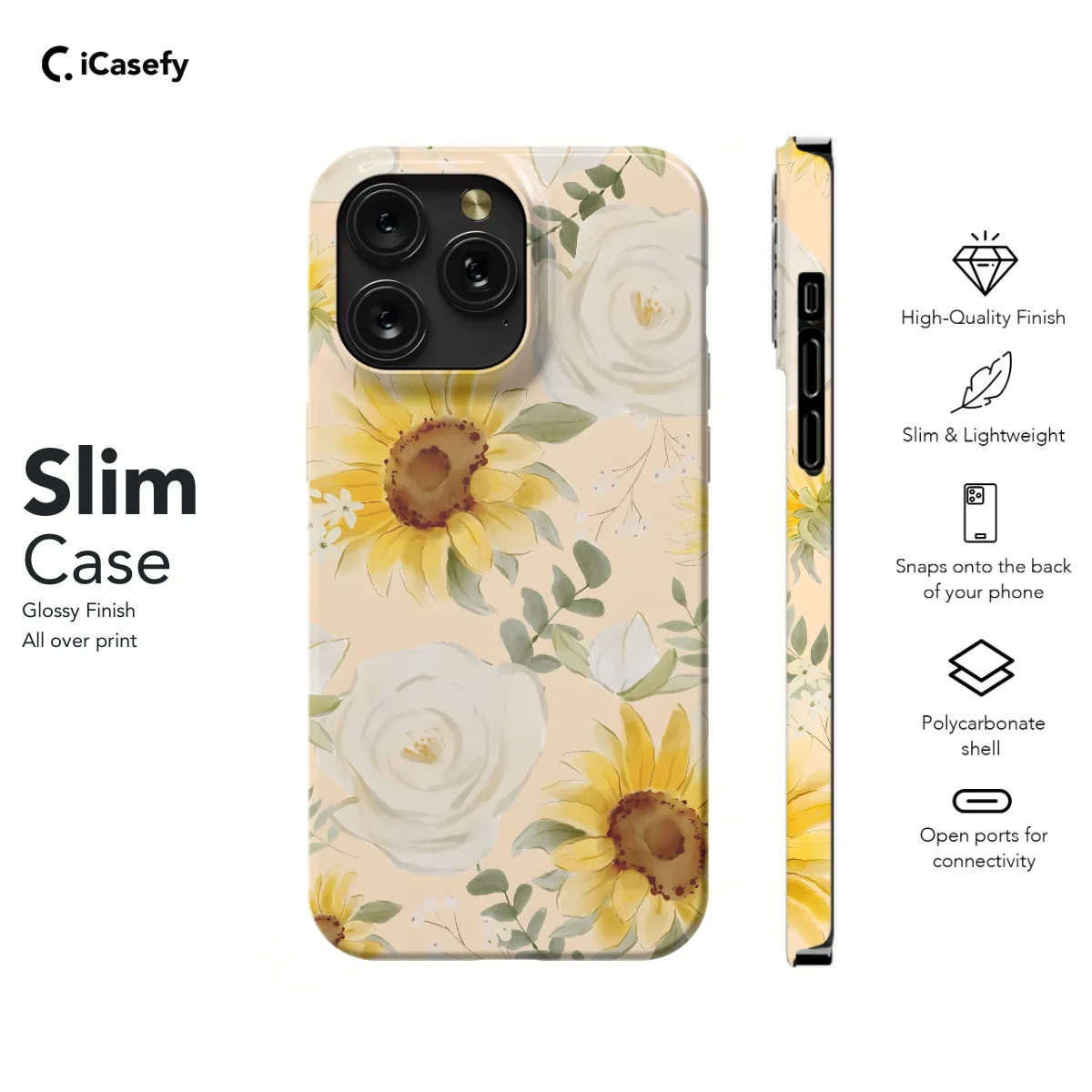 Escape into a realm of nature's artistry with our exquisite Sunflowers and Magnolias Phone Case. This vibrant and eye-catching accessory will transform your ordinary device into a breathtaking canvas. Crafted from durable materials, our case protects your phone from everyday wear and tear while showcasing the vibrant hues of blooming sunflowers and delicate magnolias. The intricate floral design evokes a sense of serenity and brings the beauty of nature right to your fingertips. Available for a wide range of iPhone, Samsung, and Pixel models, our phone case ensures a perfect fit for your device. The precise cutouts provide easy access to ports, buttons, and the camera, ensuring seamless functionality. Elevate your everyday essentials with this captivating Sunflowers and Magnolias Phone Case. Its timeless design and durable construction make it a perfect choice for those who appreciate both beauty and protection.