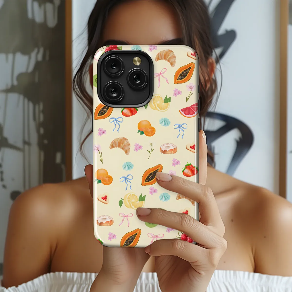 Sweet Summer Brunch Fruit and Pastry Design Phone Case Cover for iPhone 17 Pro Max 16 15 Plus 14 13 Mini Samsung S26 S25 Pixel 10 9 9576