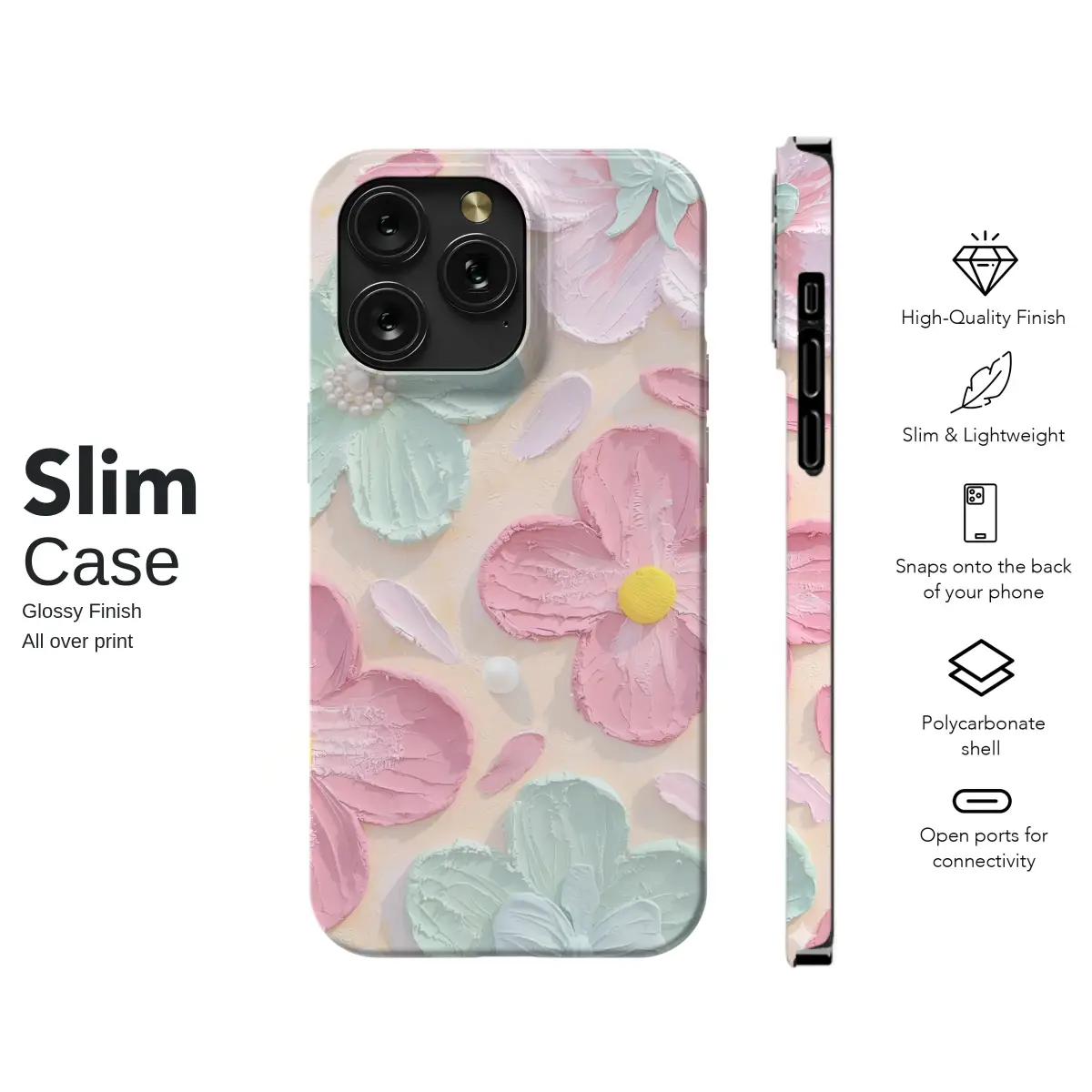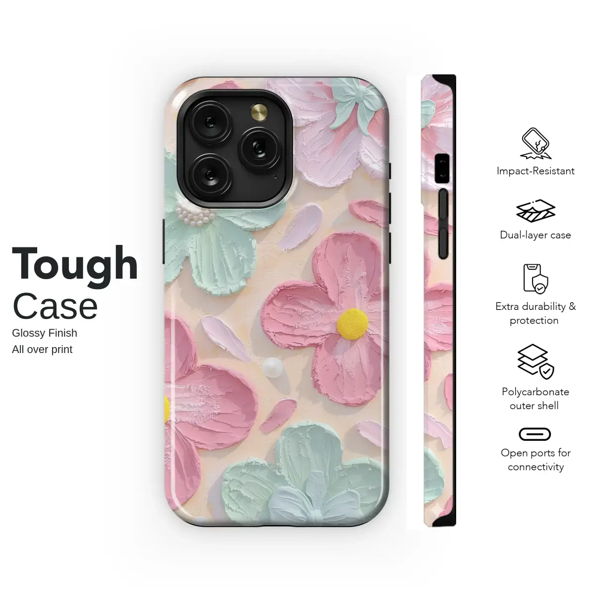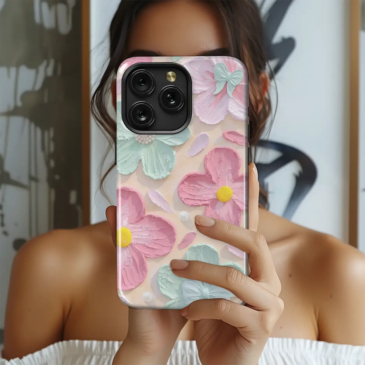 Textured Pastel Floral Design with 3D Pearls and Bows Phone Case Cover for iPhone 17 Pro Max 16 15 13 Samsung S26 S25 Pixel 9731