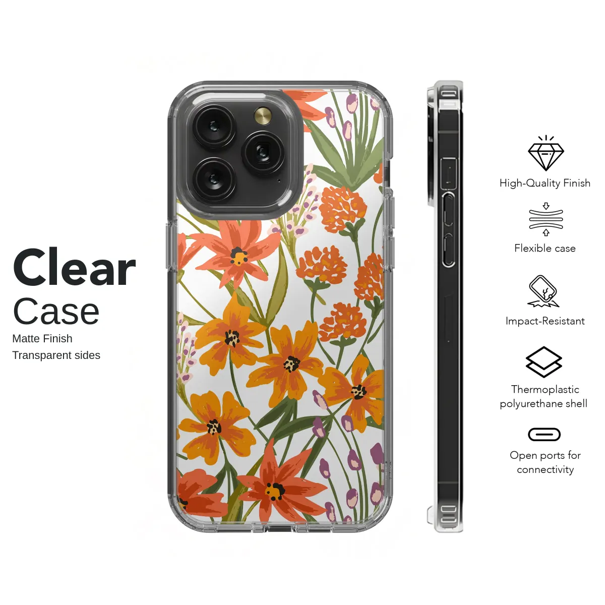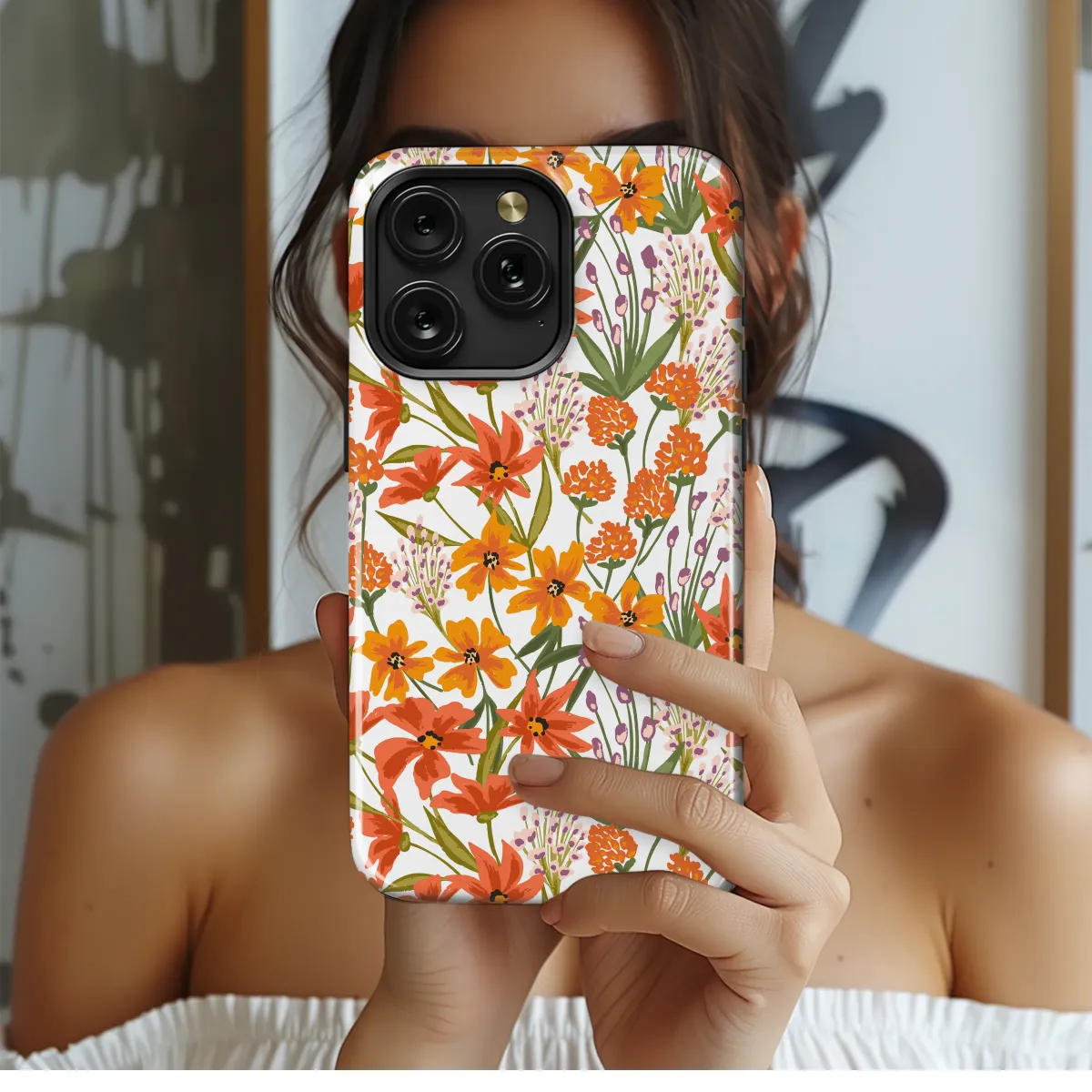 Vibrant Orange Wildflower Botanical Art Phone Case Cover for iPhone 17 Pro Max 16 15 Plus 14 13 Mini Samsung S25 S24 Google Pixel 10 9 8672