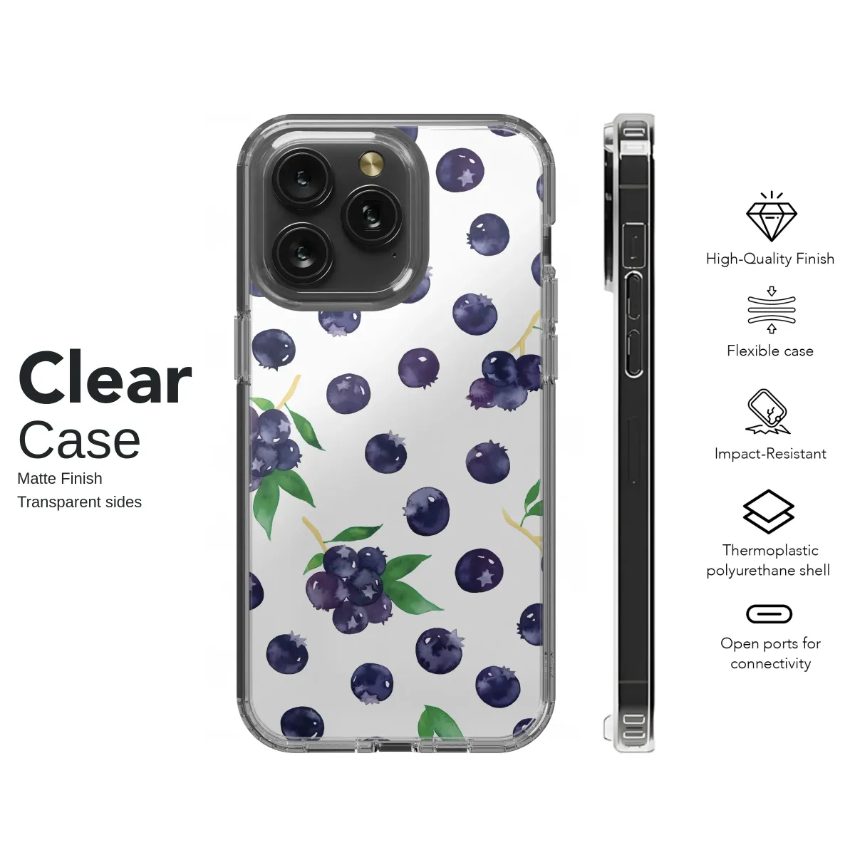 Watercolor Blueberry Fruit Pattern Illustration Phone Case Cover for iPhone 17 Pro Max 16 15 Plus 14 13 Mini Samsung S25 S24 Pixel 10 9 9056
