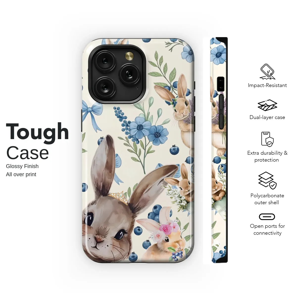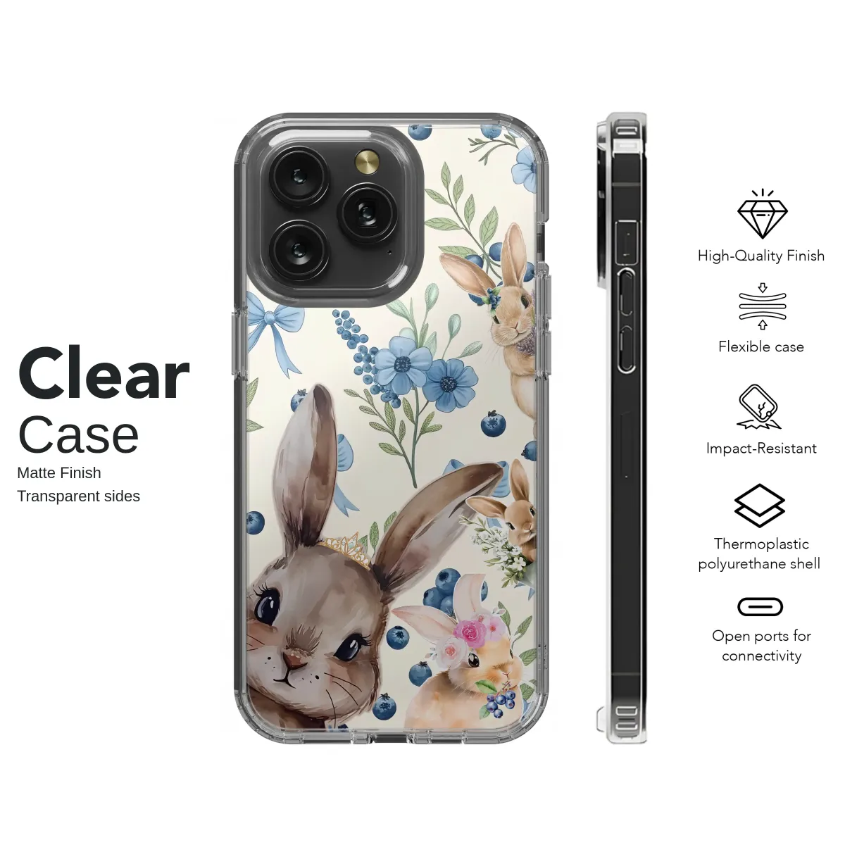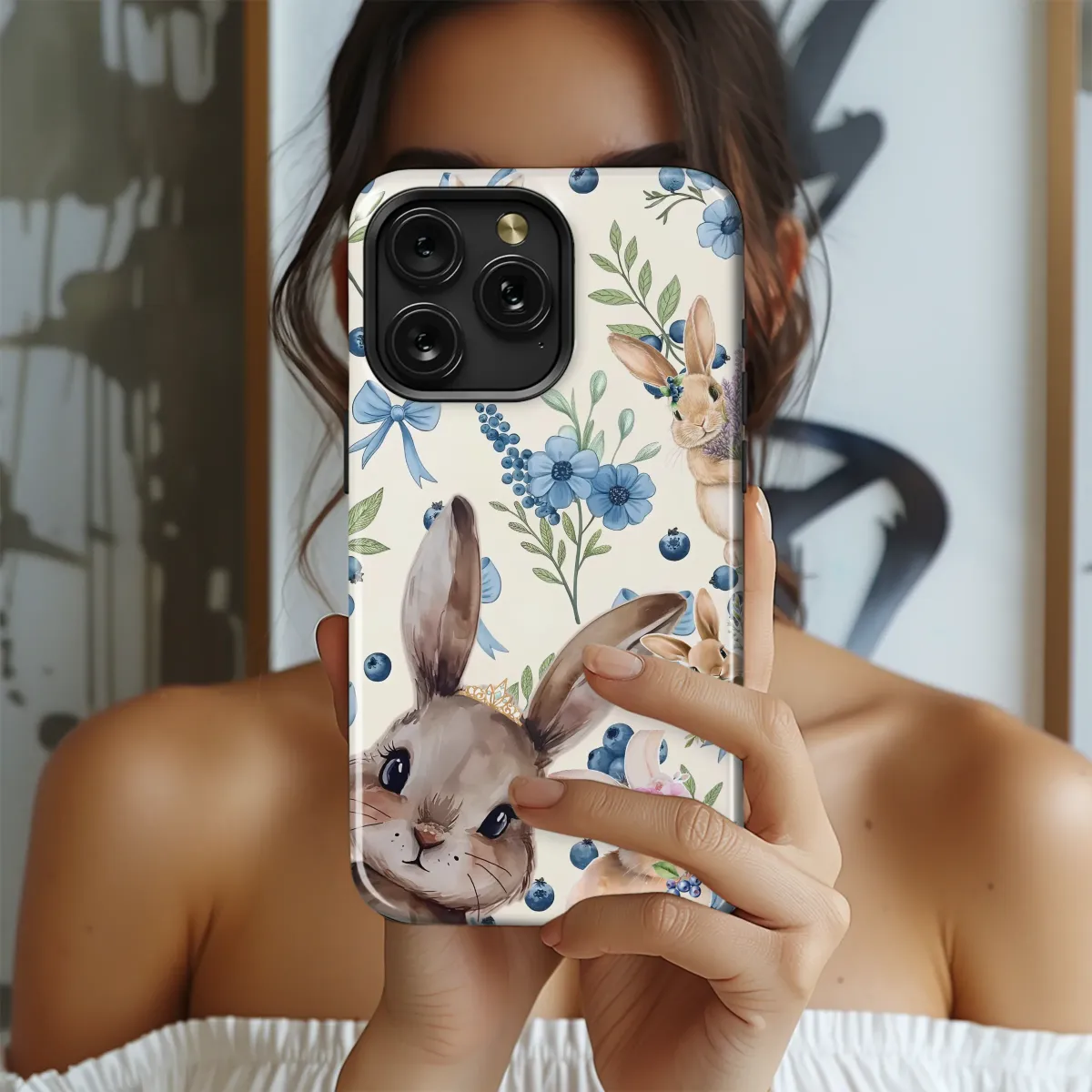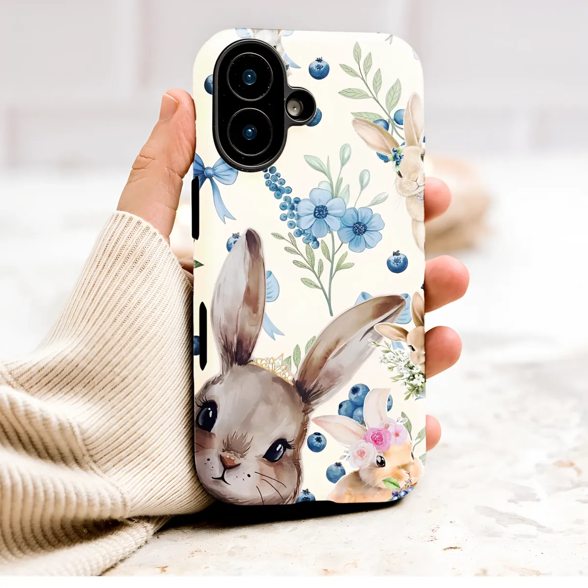 Watercolor Bunny and Blueberry Botanical Art Phone Case Cover for iPhone 17 Pro Max 16 15 Plus 14 13 Mini Samsung S25 S24 Pixel 10 9 9291