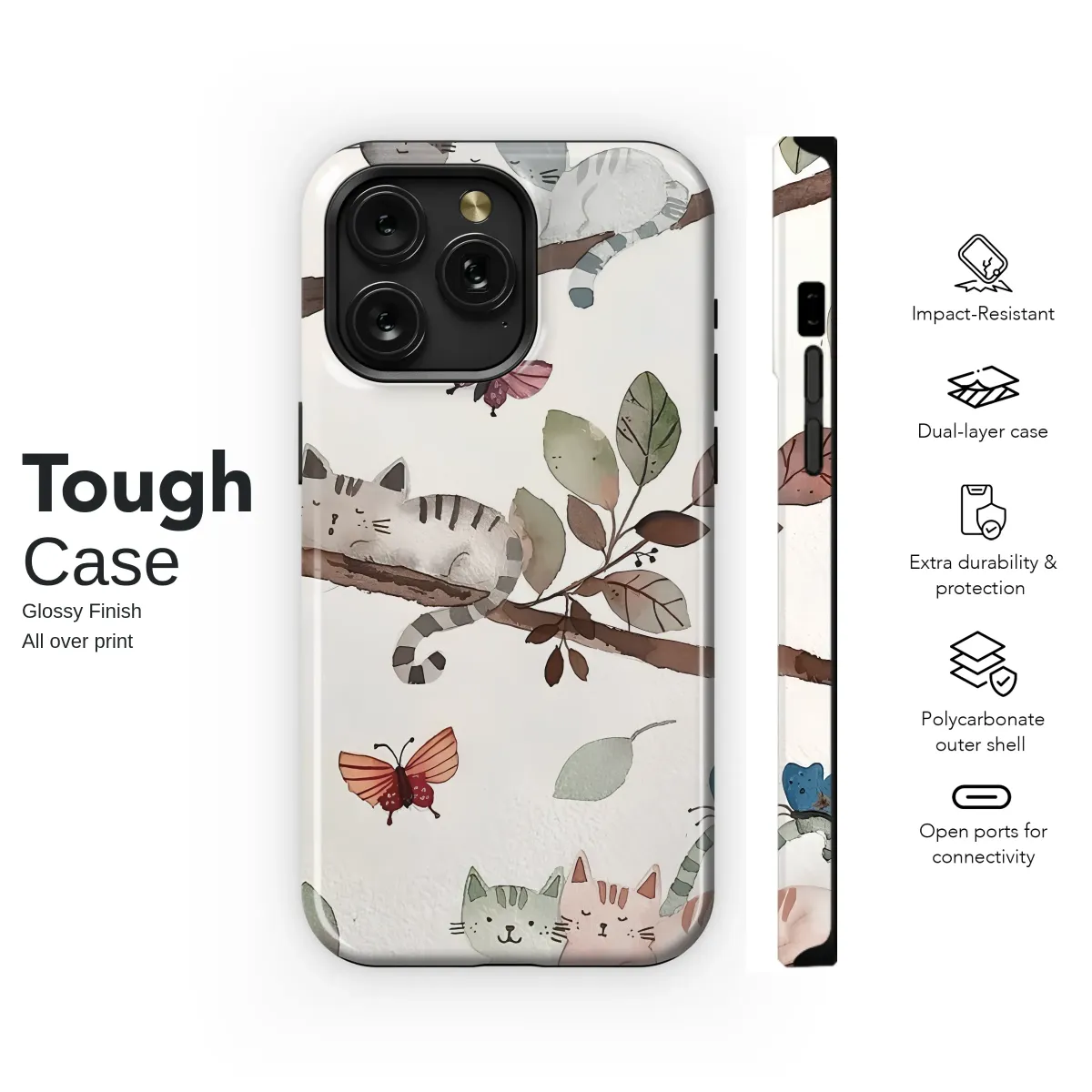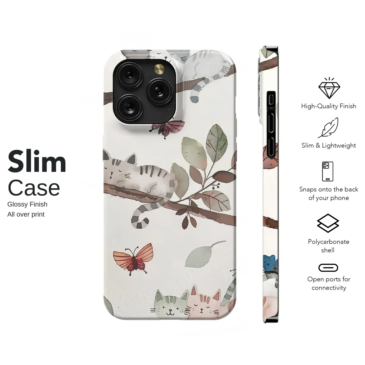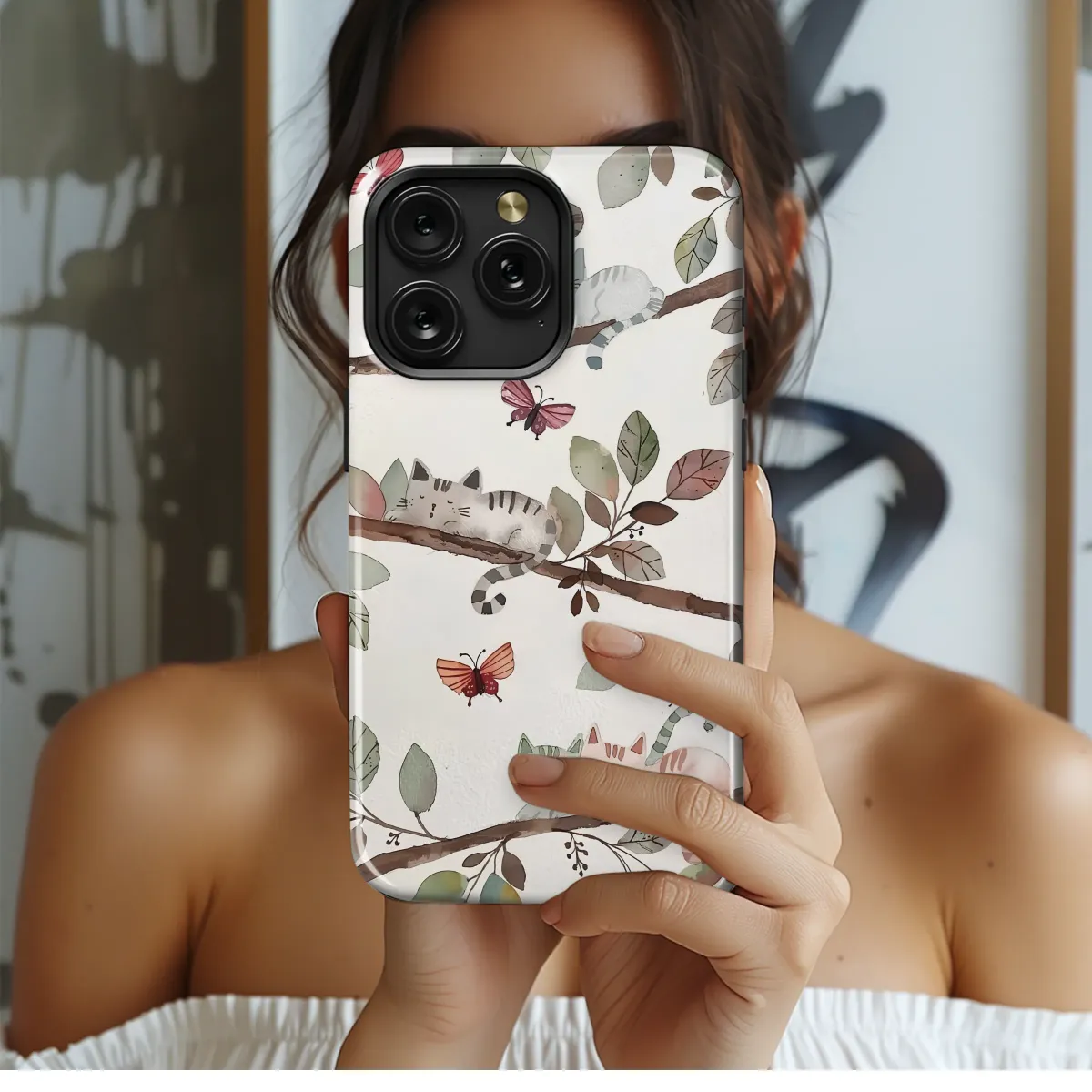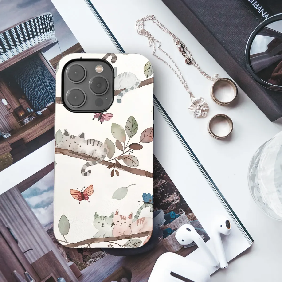 Watercolor Cats on Branch Whimsical Kitten Illustration Phone Case Cover for iPhone 17 Pro Max 16 15 13 Samsung S25 S24 Pixel 8725