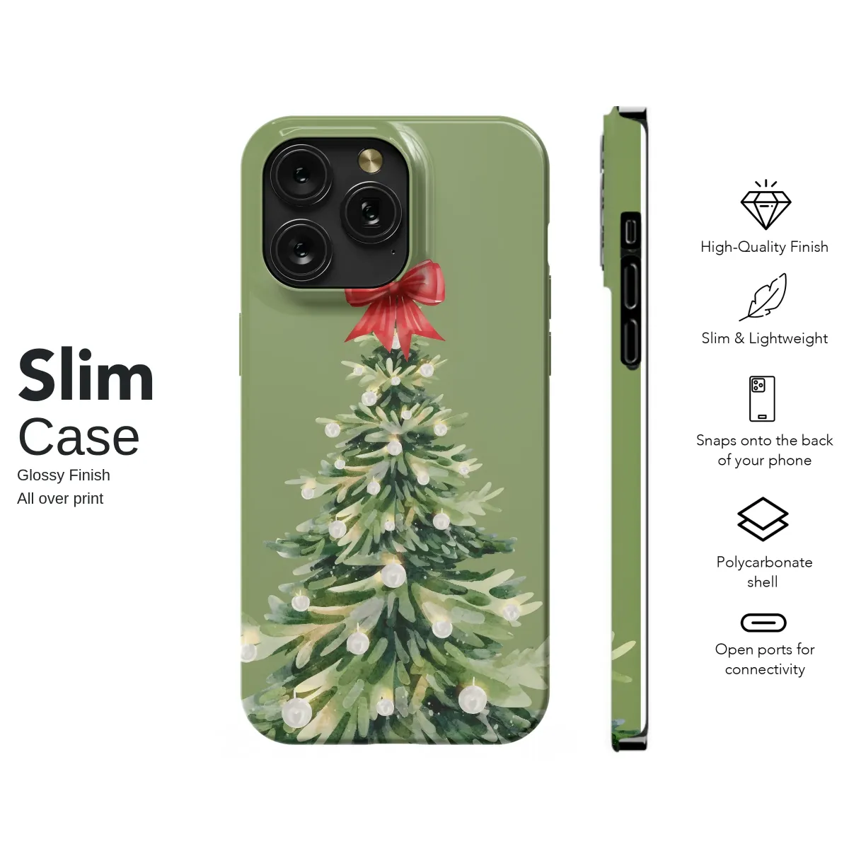 Watercolor Christmas Tree with Red Bow Festive Holiday Art Phone Case Cover for iPhone 17 Pro Max 16 15 13 Samsung S25 S24 Pixel 8500
