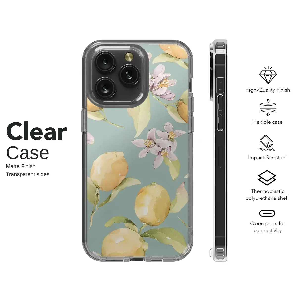 Watercolor Lemon Blossom Botanical Art Phone Case Cover for iPhone 17 Pro Max 16 15 Plus 14 13 Mini Samsung S26 S25 Google Pixel 10 9 9856