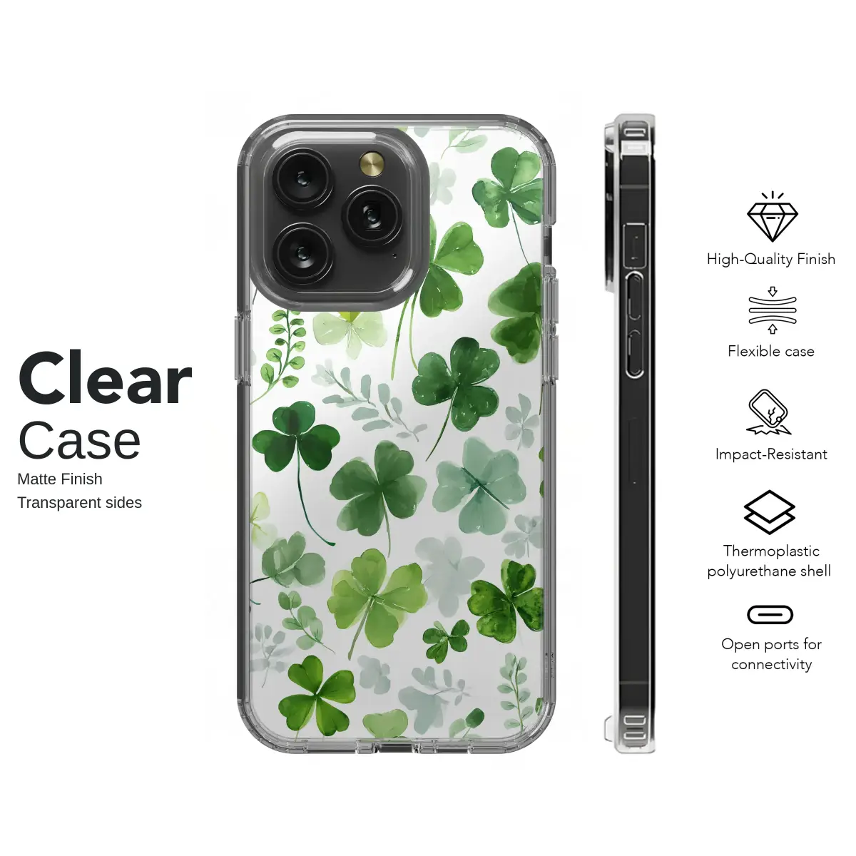 Watercolor Shamrock Pattern Green Clover Lucky Charm Art Phone Case Cover for iPhone 17 Pro Max 16 15 13 Samsung S26 S25 Pixel 9845