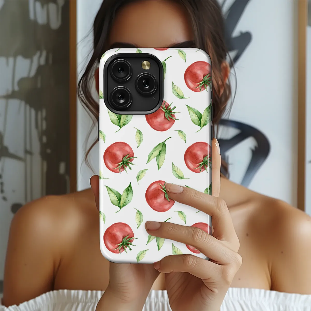 Watercolor Tomato Pattern Botanical Garden Fresh Vegetable Illustration Phone Case Cover for iPhone 17 15 13 Samsung S25 S24 9022