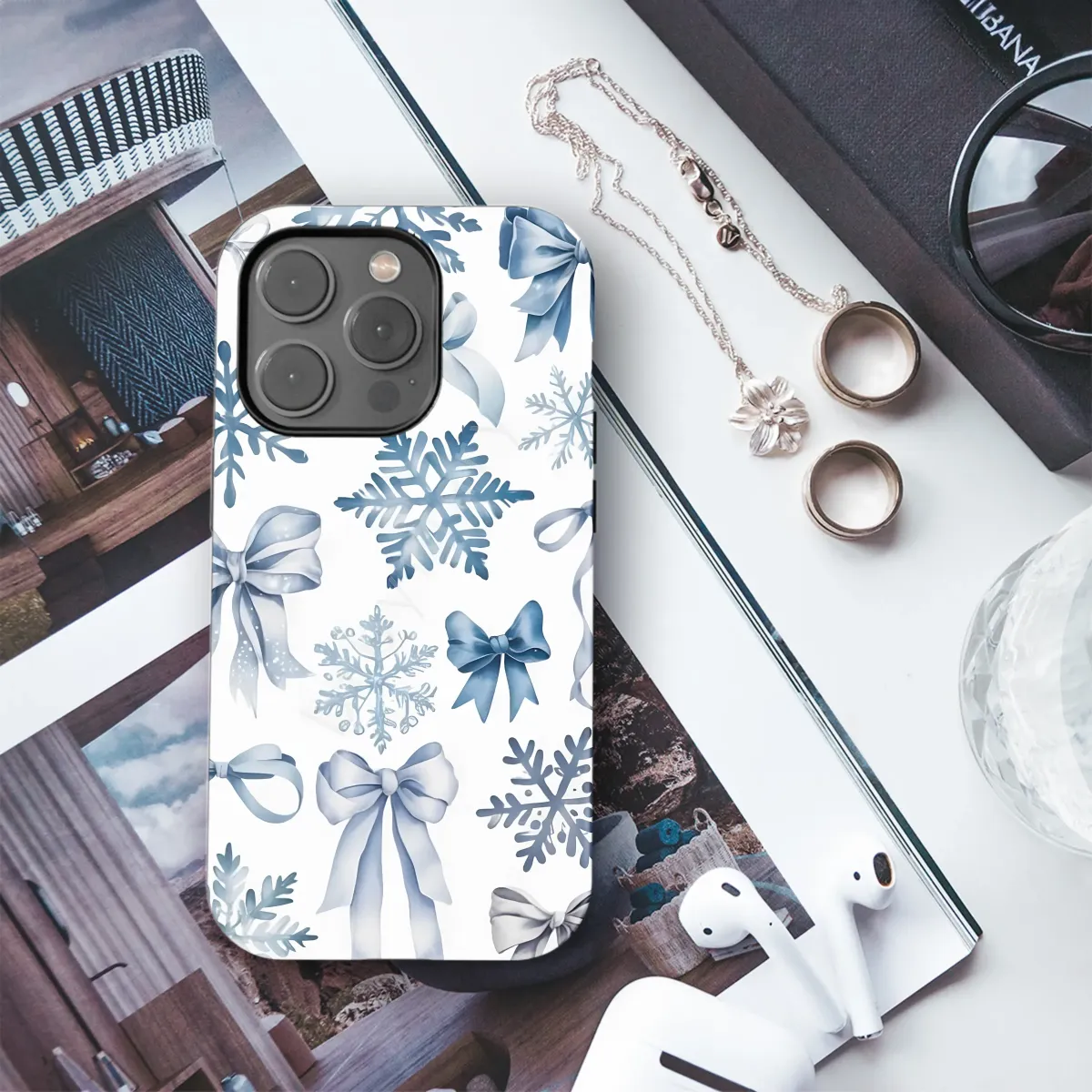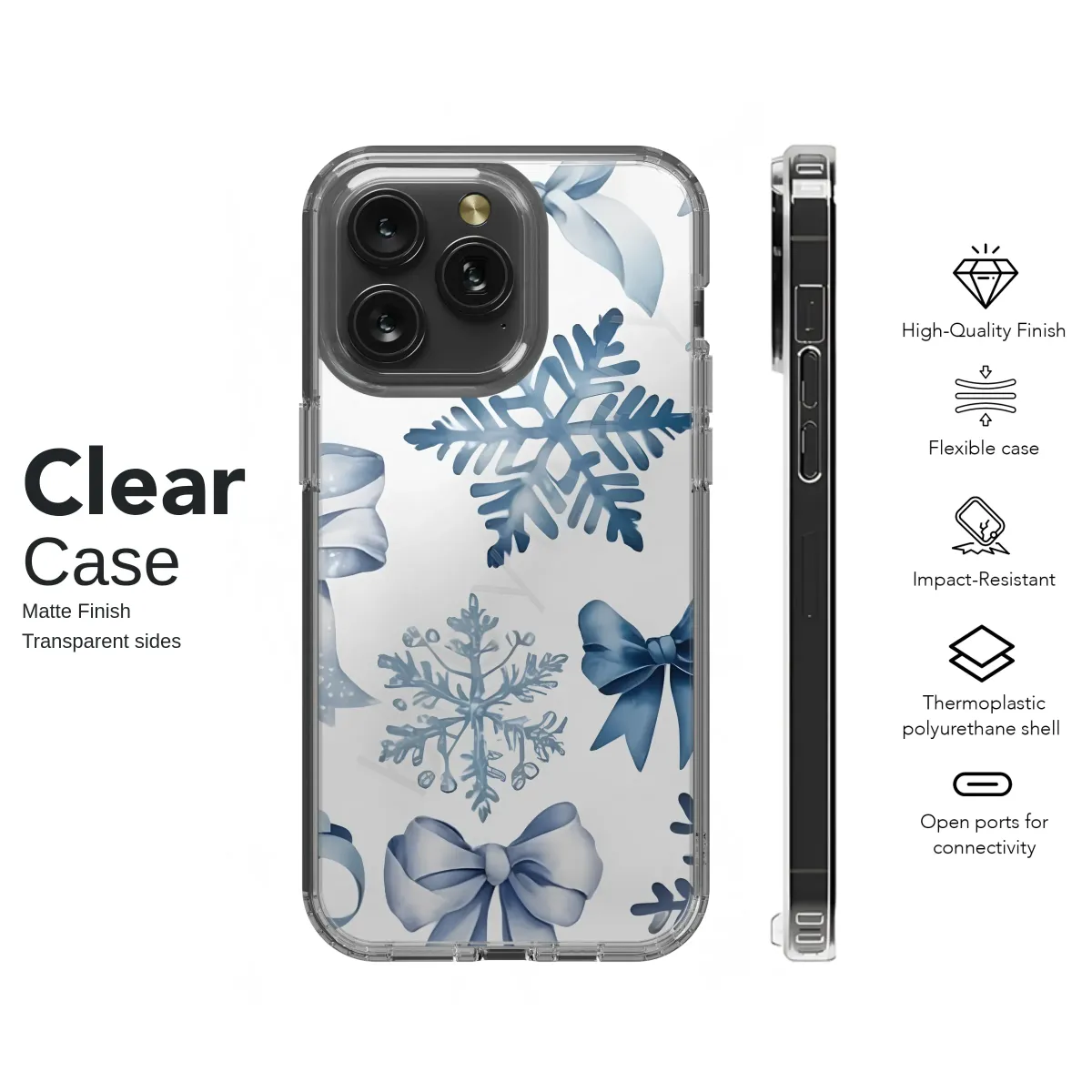 Watercolor Winter Snowflake and Blue Bows Pattern Phone Case Cover for iPhone 17 Pro Max 16 15 13 Samsung S25 S24 Pixel 8681