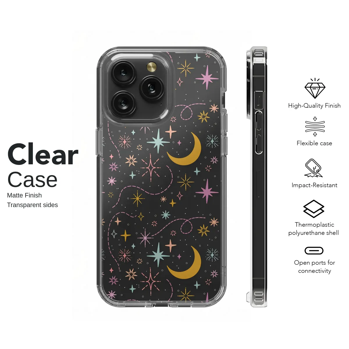 Whimsical Celestial Moon and Stars Pattern Phone Case Cover for iPhone 17 Pro Max 16 15 Plus 14 13 Mini Samsung S25 S24 Pixel 10 9 8309