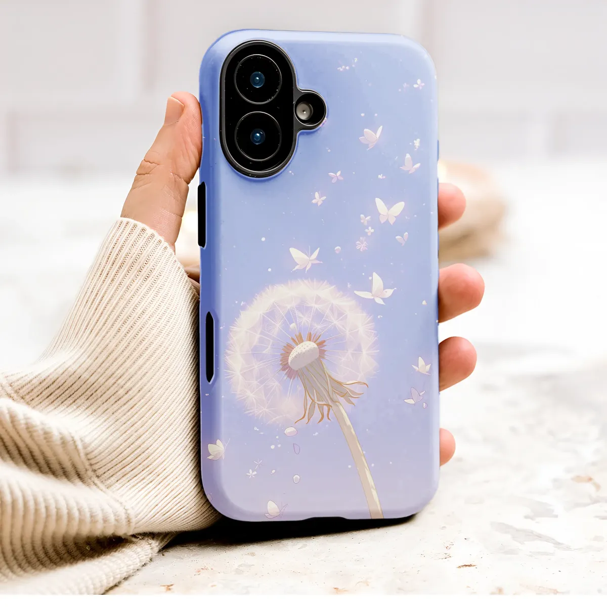 Whimsical Dandelion Butterfly Pastel Sky Illustration Phone Case Cover for iPhone 17 Pro Max 16 15 13 Samsung S25 S24 Pixel 8984