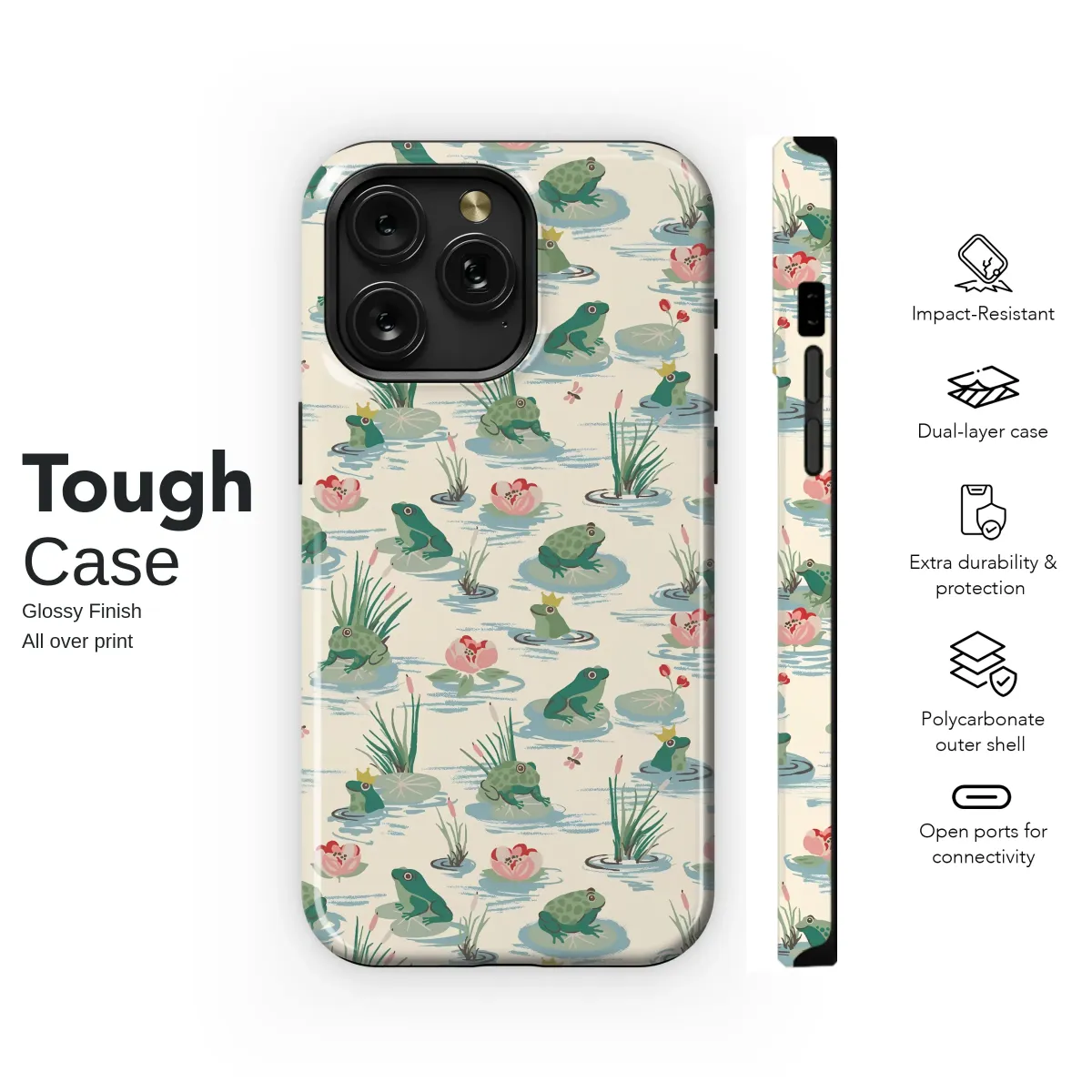 Whimsical Frog Prince Pond Life Pattern Phone Case Cover for iPhone 17 Pro Max 16 15 Plus 14 13 Mini Samsung S26 S25 Google Pixel 10 9 9534