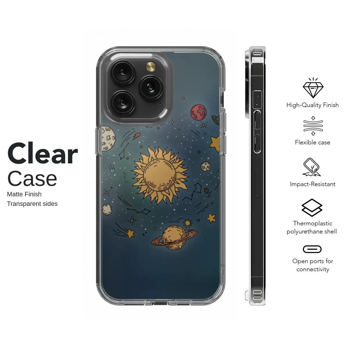 Whimsical Solar System Cosmic Art Design Phone Case Cover for iPhone 17 Pro Max 16 15 Plus 14 13 Mini Samsung S26 S25 Pixel 10 9 10029