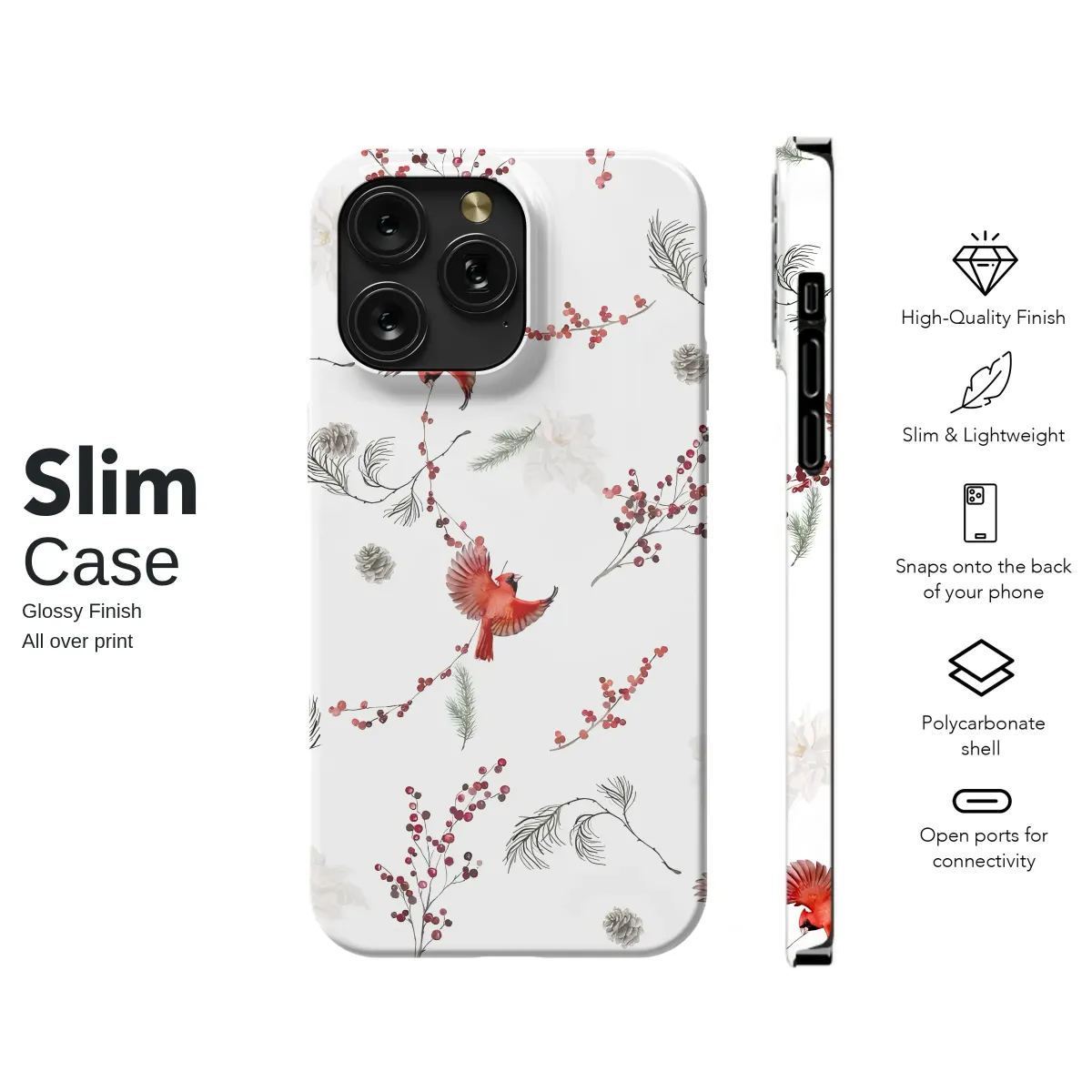 Winter Cardinal Bird Botanical Illustration Phone Case Cover for iPhone 17 Pro Max 16 15 Plus 14 13 Mini Samsung S25 S24 Pixel 10 9 8944