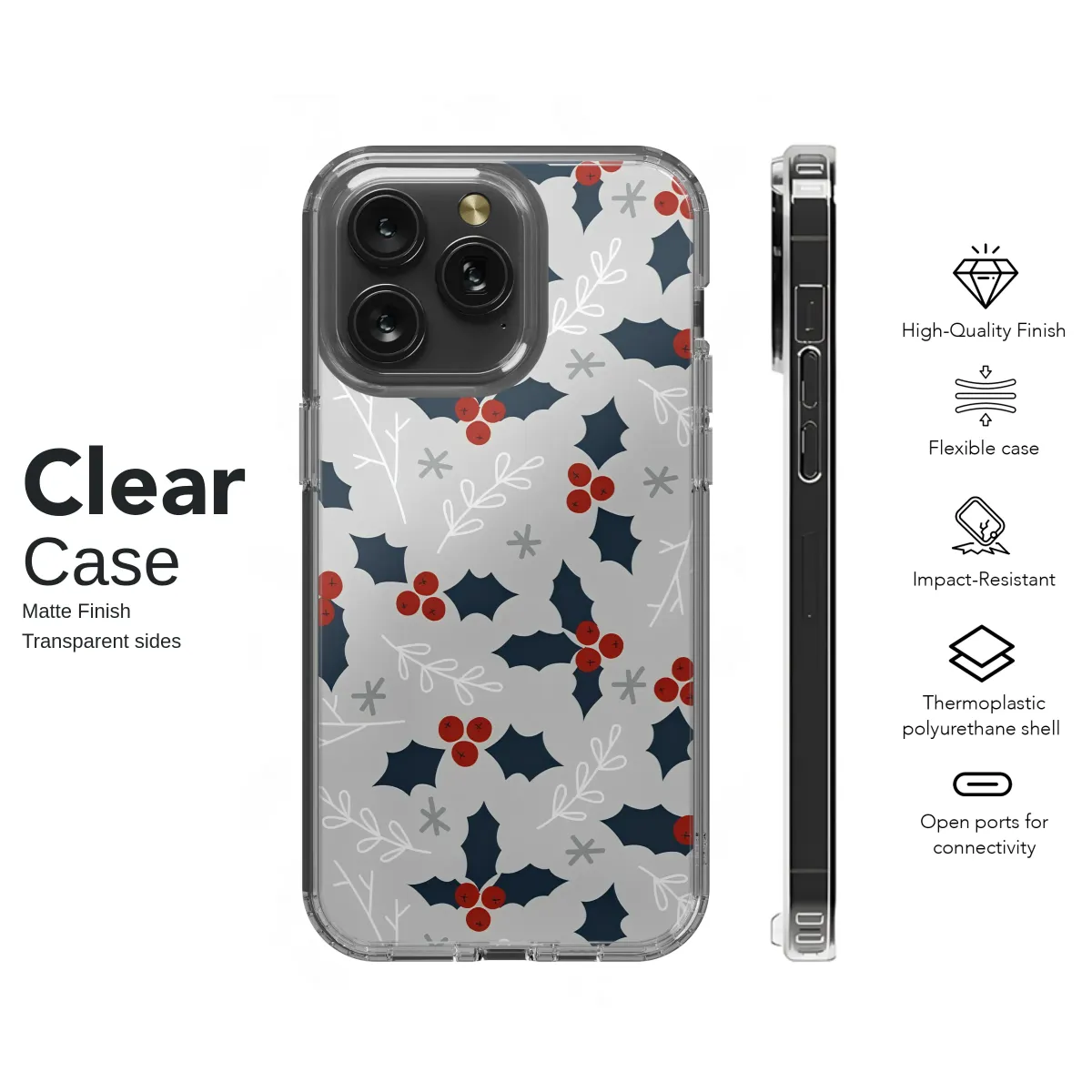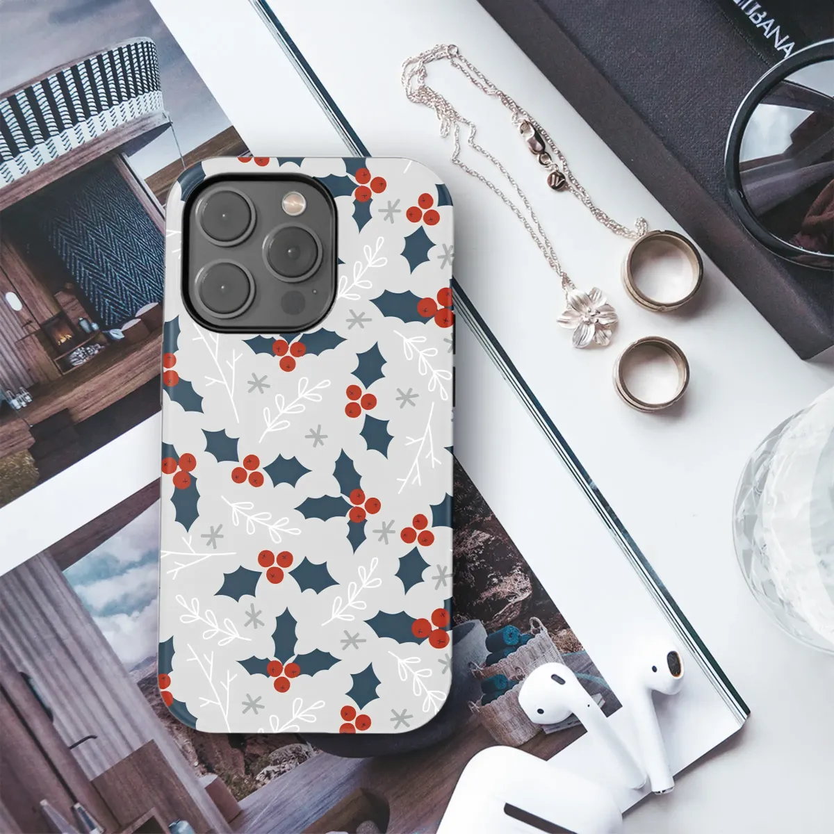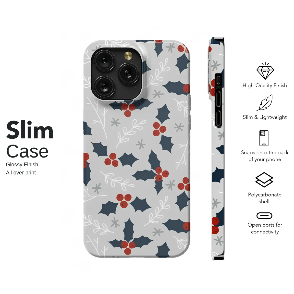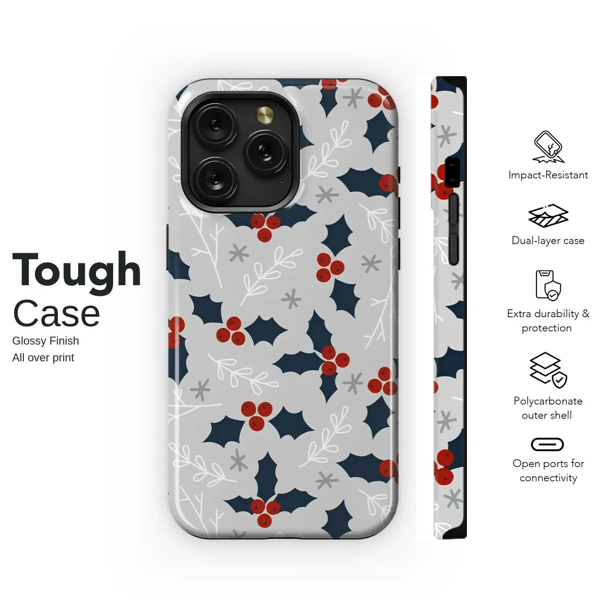 Winter Frost Holly Berry Pattern Phone Case iPhone Samsung Cover Pixel 8048