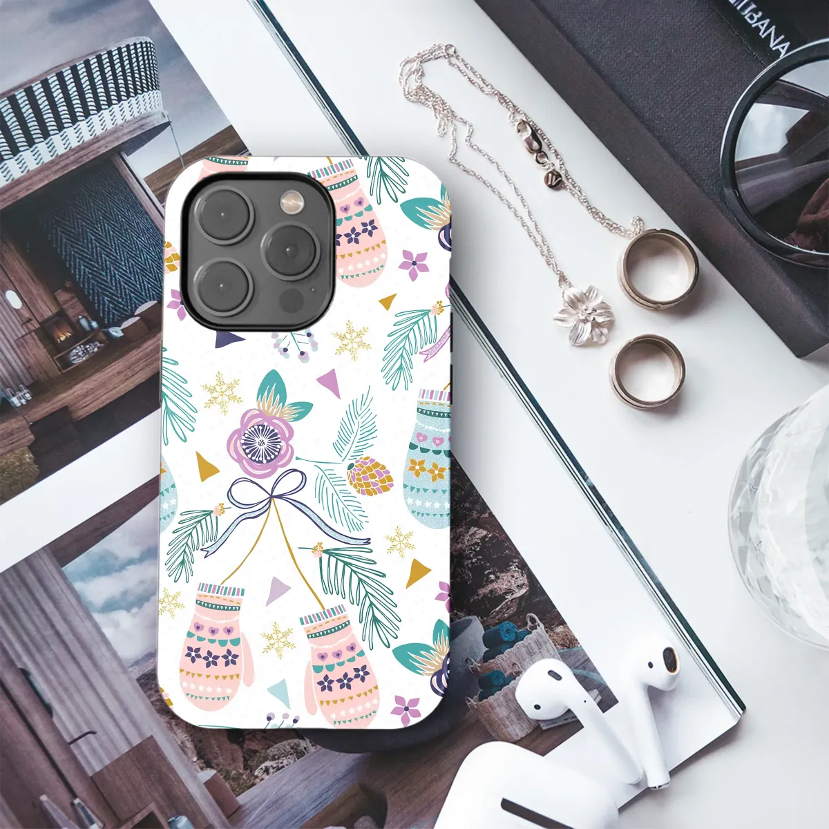 Winter Mitten Floral Snowflake Pattern Phone Case Cover for iPhone 17 Pro Max 16 15 Plus 14 13 Mini Samsung S25 S24 Google Pixel 10 9 8744