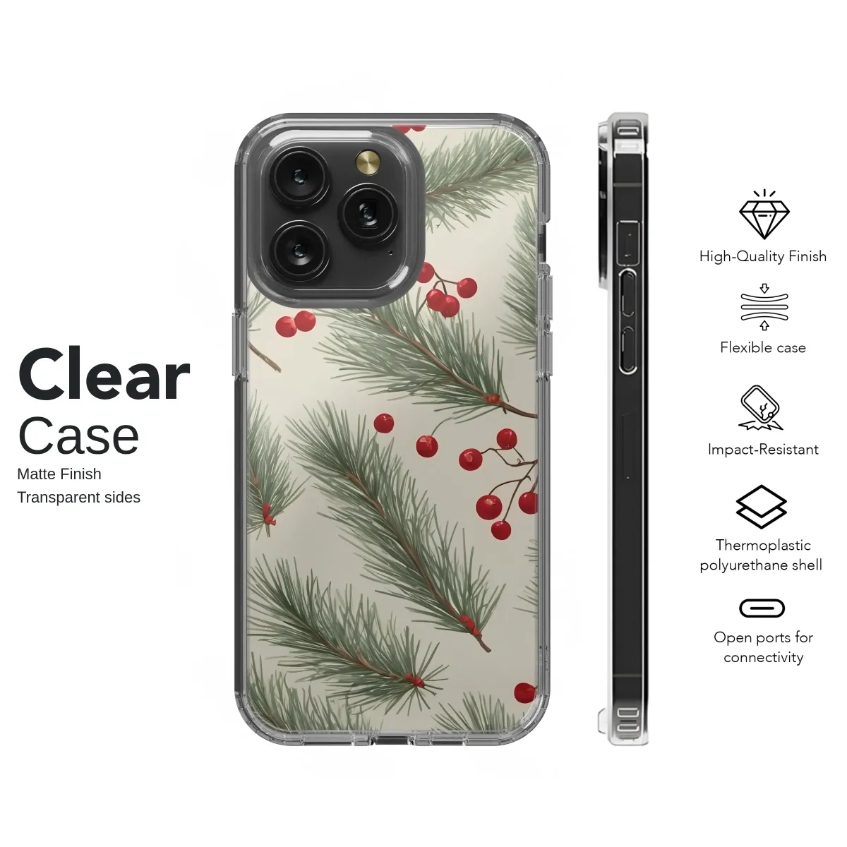 Winter Pine Branch Red Berry Botanical Pattern Phone Case Cover for iPhone 17 Pro Max 16 15 Plus 14 13 Mini Samsung S25 S24 Pixel 10 9 8312