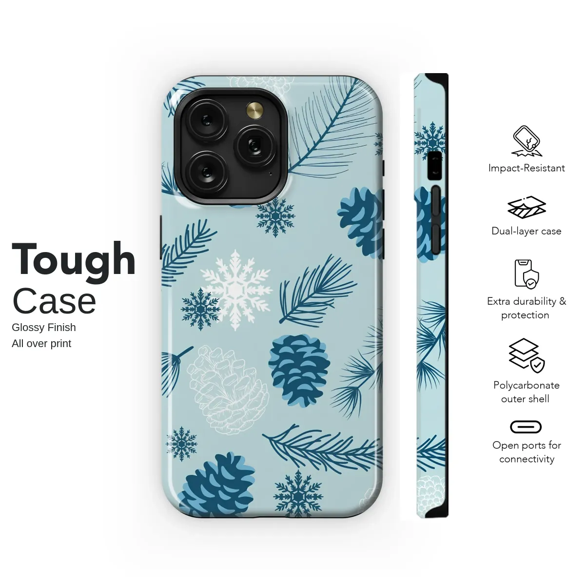 Winter Pinecone Botanical Phone Case, Blue Snowflake Pattern Cover Phone Case iPhone Samsung Cover Pixel 8151