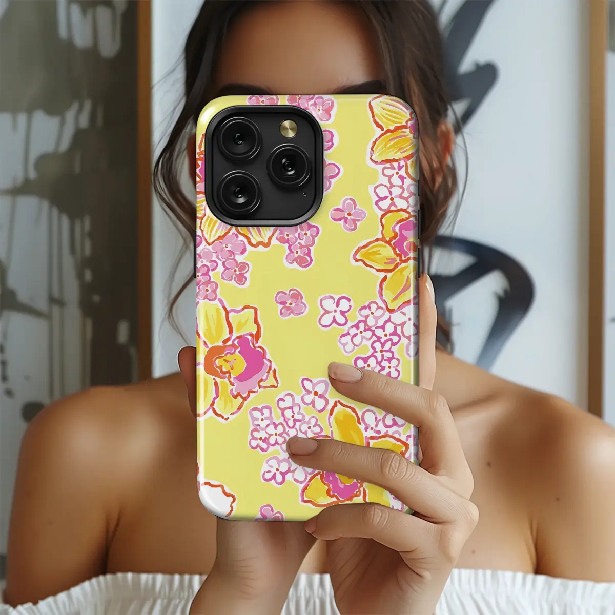 Yellow Daffodil Pink Floral Preppy Summer Art Phone Case Cover for iPhone 17 Pro Max 16 15 Plus 14 13 Mini Samsung S26 S25 Pixel 10 9 9886