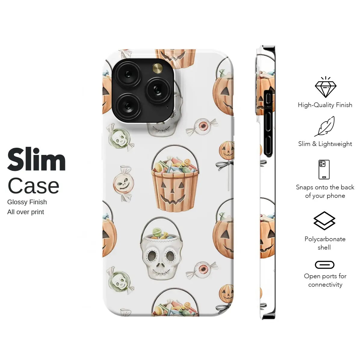 Step into the magical nostalgia of your favorite spooky season and carry the joyful spirit of trick-or-treating right in your pocket! This utterly charming tech accessory captures the pure delight of an October evening with its whimsical, hand-painted watercolor design, making it the perfect fall aesthetic statement. Imagine a festive parade of classic jack-o'-lantern pails and friendly, smiling skull buckets, each one filled to the brim and overflowing with a vibrant treasure trove of colorful candies. Tiny, sweet pumpkin lollipops tied with delicate black bows, grinning ghost-faced sweets, and quirky, all-seeing eyeball candies dance playfully across the surface, evoking cherished memories of crisp autumn air and moonlit neighborhood adventures. It's the ultimate way to dress up your most-used gadget in a cozy, yet spirited, seasonal style. This durable and artistic protective shell not only safeguards your essential device but also serves as a daily dose of playful spookiness and nostalgic warmth. It's an absolutely ideal gift for any Halloween lover or a special treat to celebrate your own love for all things autumn. Let this beautifully illustrated cover be your constant companion through the fall, adding a touch of unique, handcrafted magic and whimsical fun to every single call, text, and scroll. Embrace the season in style and let your personality shine with this unforgettable Halloween wardrobe for your tech.