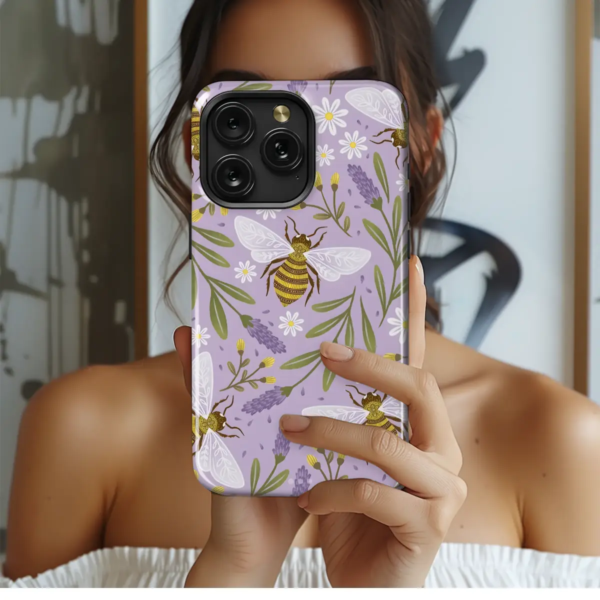 Let the gentle hum of a sun-drenched meadow accompany you everywhere you go with this enchanting botanical design. Imagine wandering through fields of soft lavender and cheerful daisies, where whimsical folk-art honeybees dance from blossom to blossom. Each bee is a tiny masterpiece, with a golden, patterned body and ethereal, lace-like wings, all set against a dreamy lilac purple backdrop that soothes the soul. This isn't just a pattern; it's a pocketful of cottagecore magic, a daily connection to the gentle beauty of nature. Wrap your most essential daily companion in this charming scene, giving it a unique personality that speaks to your love for all things wild and free. It’s the perfect aesthetic accessory for the gardener, a thoughtful gift for the bee lover, or a personal treat for anyone who finds joy in boho-inspired art. Let this beautiful wildflower illustration turn a simple tool into a conversation piece, carrying the peaceful buzz of a summer garden right into the palm of your hand.