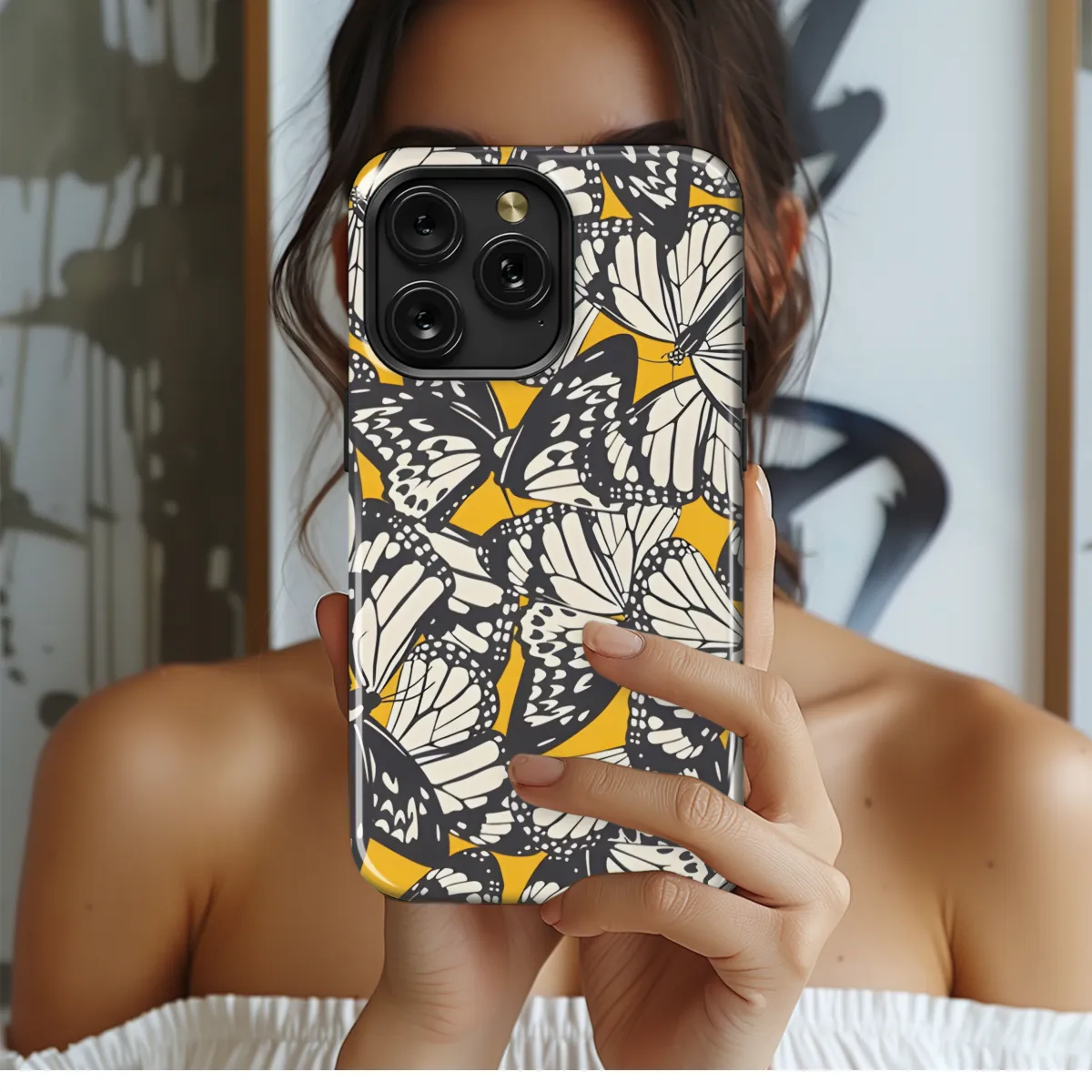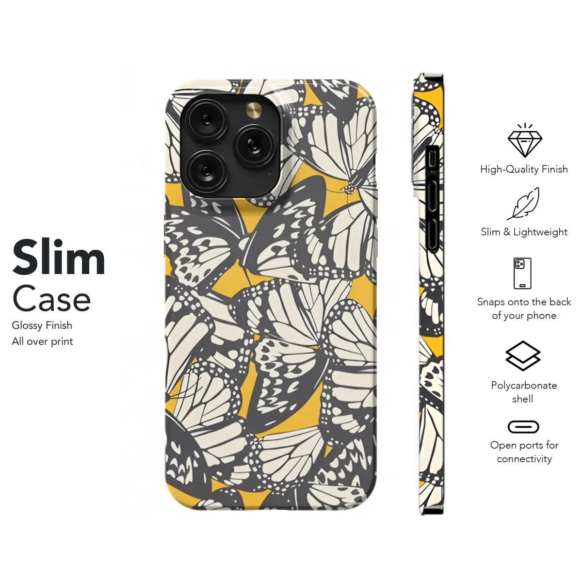 Captivating and unique, our Abstract Butterfly Print Phone Case will transform your device into a canvas of vibrant beauty. Its intricate design features a mesmerizing blend of abstract brushstrokes and ethereal butterfly motifs, creating an eye-catching masterpiece that will elevate your style.
