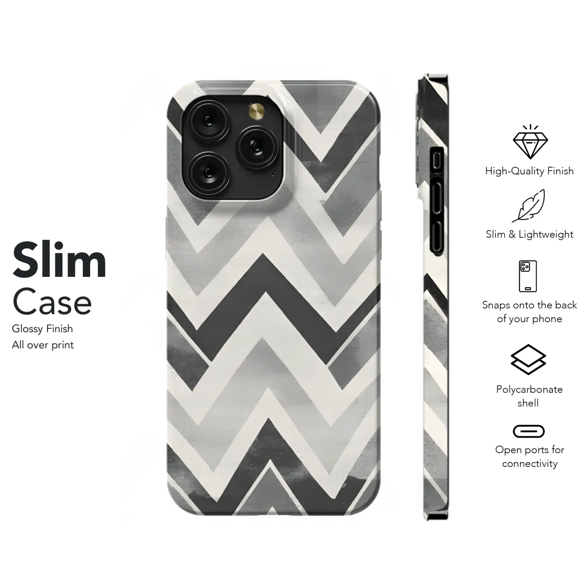 Protect your phone with this stylish and unique abstract chevron phone case. The vibrant colors and geometric pattern will add a touch of personality to your device while keeping it safe from scratches and bumps. The case is made of durable materials to withstand everyday use, and it's easy to put on and take off. Compatible with iPhone, Samsung, and Pixel devices.