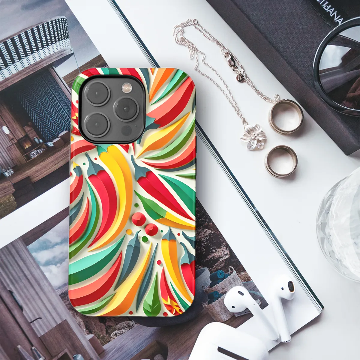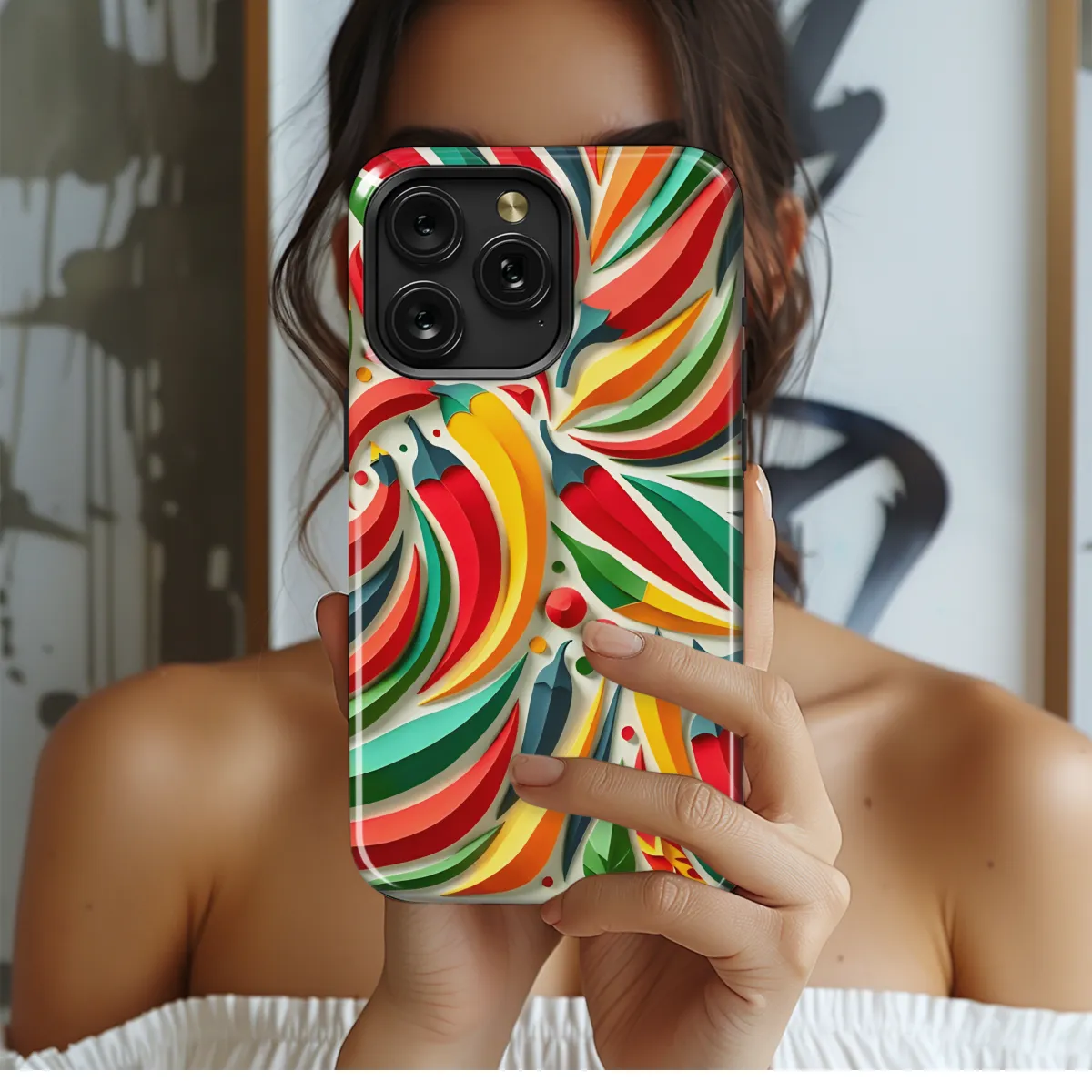 Adorn your mobile with this captivating Abstract Chili Collage Phone Case. Its vibrant hues and intricate design will transform your phone into a work of art. Crafted with precision, it seamlessly aligns with the contours of your iPhone, Samsung, or Pixel device, ensuring a secure fit and effortless access to essential functions.
