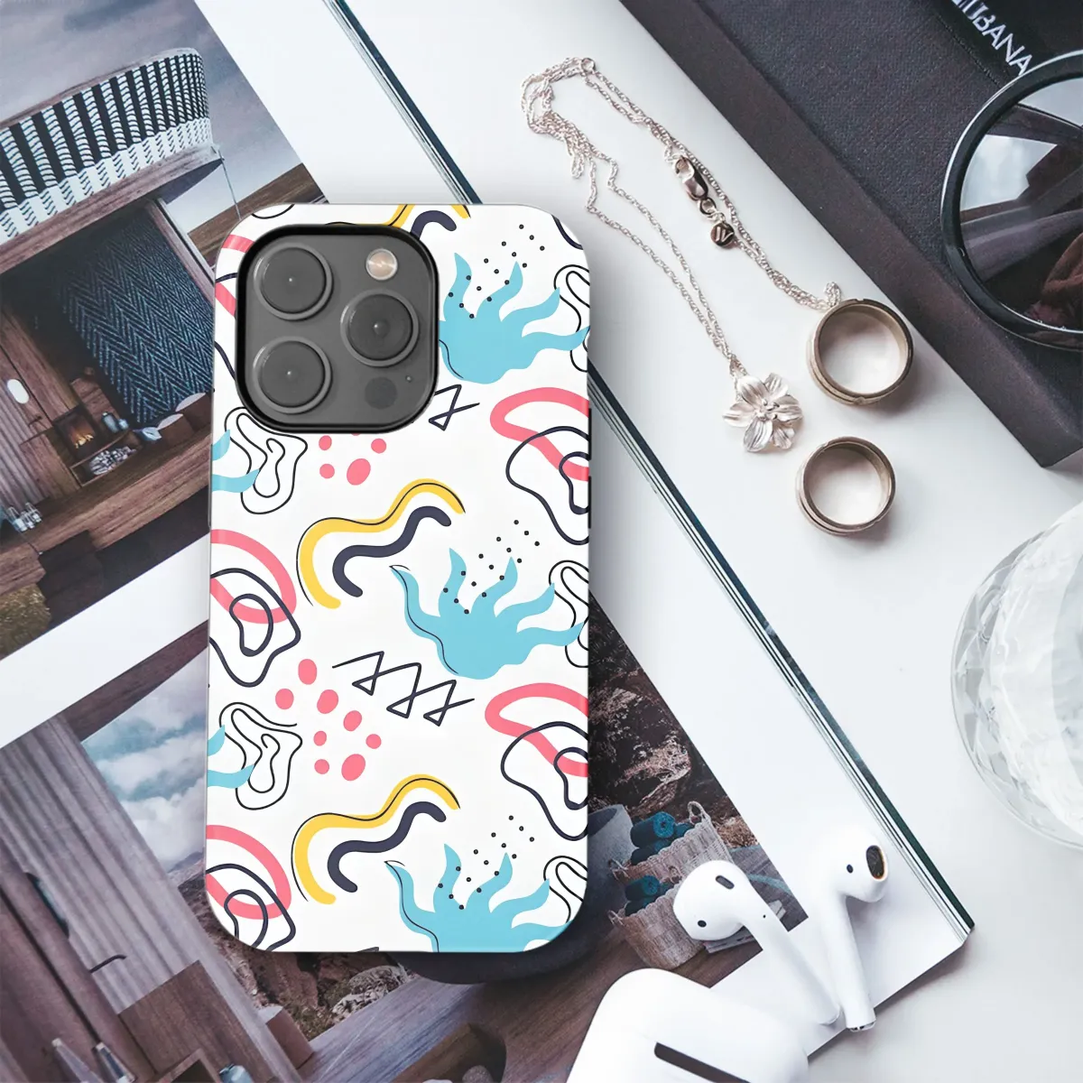 Elevate your everyday tech with this vibrant and playful abstract design, a burst of modern art crafted for your handheld device. Featuring a captivating collage of bold shapes, whimsical squiggles, and lively dots in a harmonious blend of blue, yellow, coral, and black against a clean backdrop, this eye-catching artwork adds a splash of personality to your daily life. Ideal for trendsetters and art enthusiasts alike, this pattern brings a touch of contemporary flair to your mobile companion, making it a true statement piece. Perfect for those who appreciate unique and expressive designs, this artistic creation transforms your device into a stylish accessory, reflecting your individual taste and love for all things creative. Let your device become a canvas with this modern art-inspired graphic, a testament to your distinctive style and appreciation for visual delight. Add a pop of color and artistic charm to your digital world today with this must-have aesthetic tech accessory!