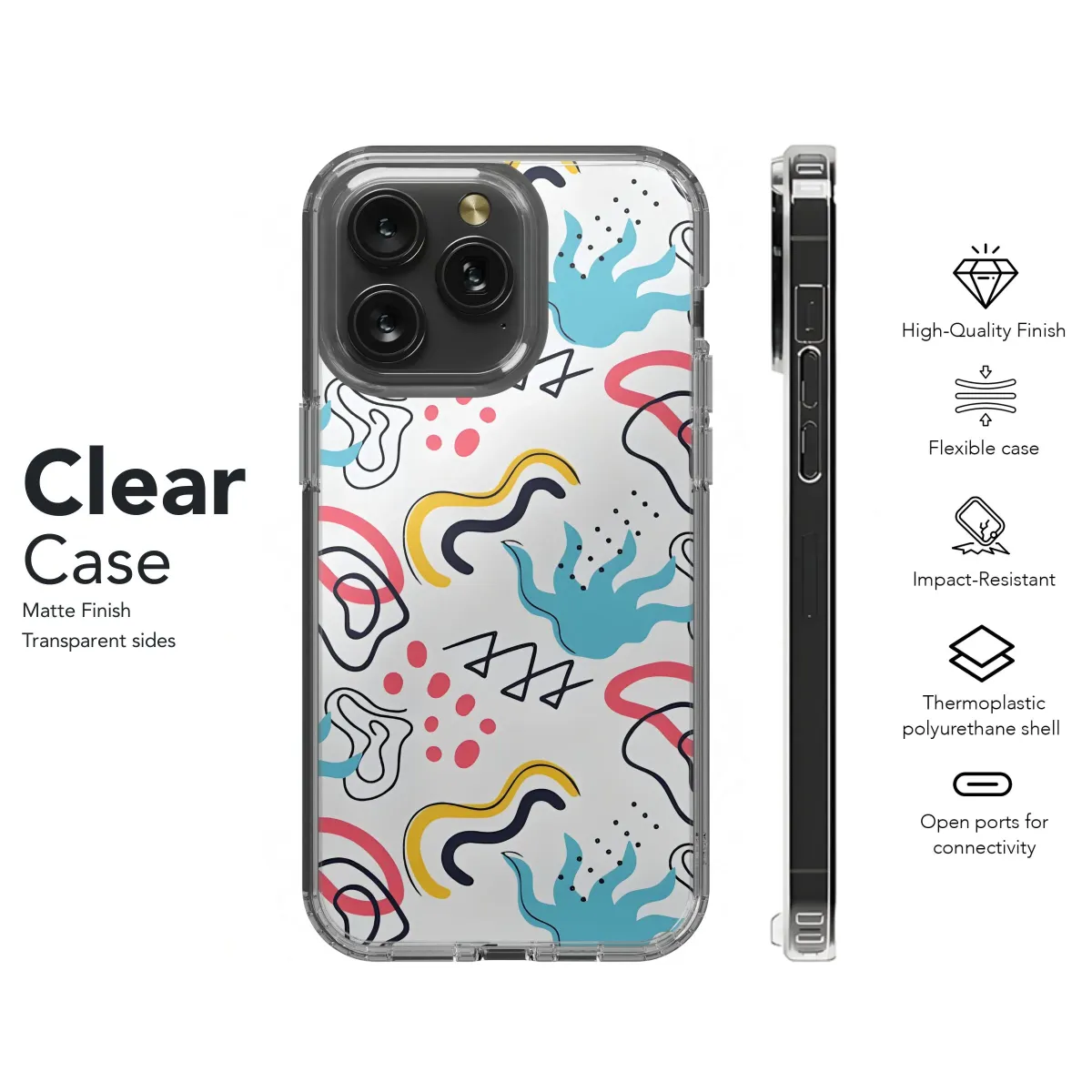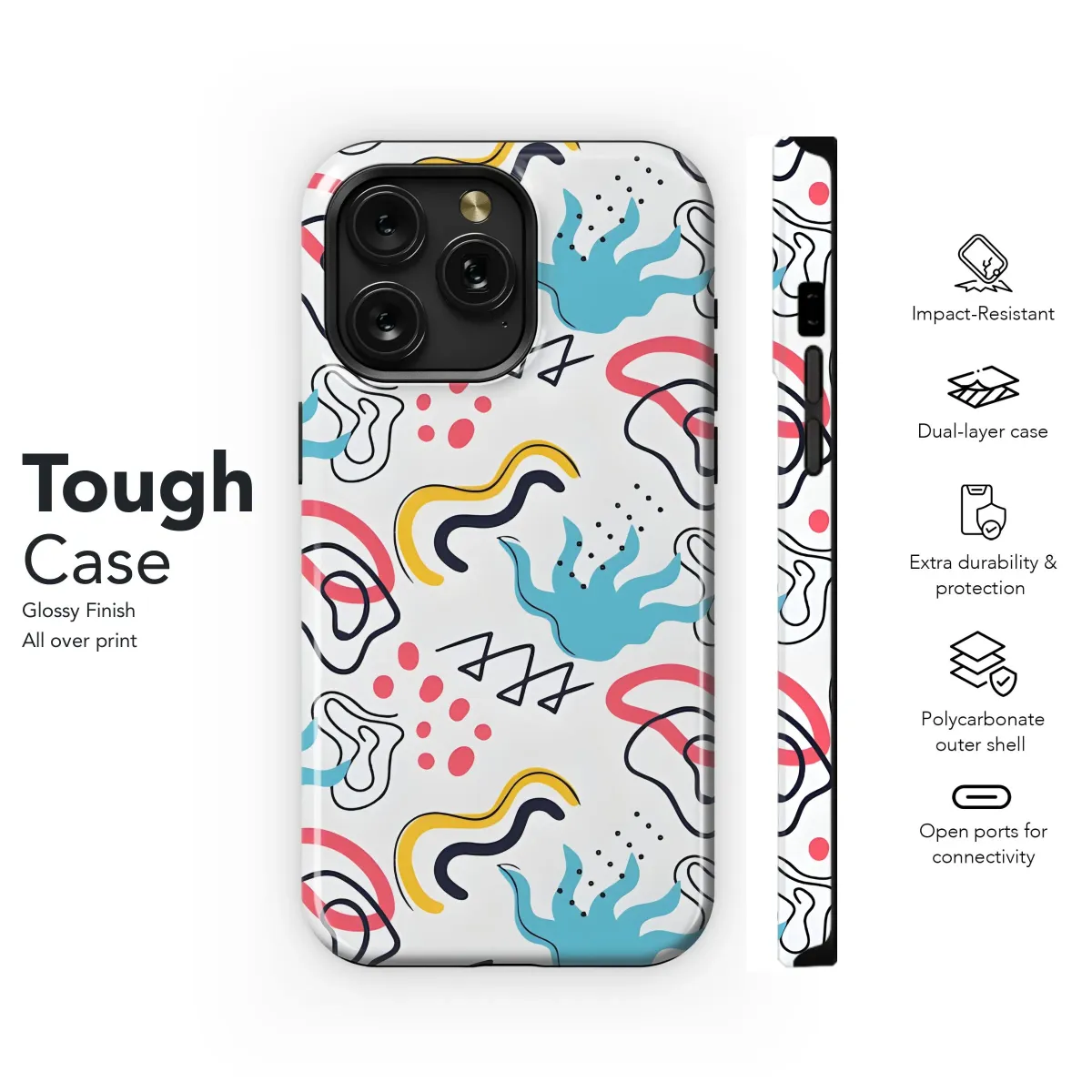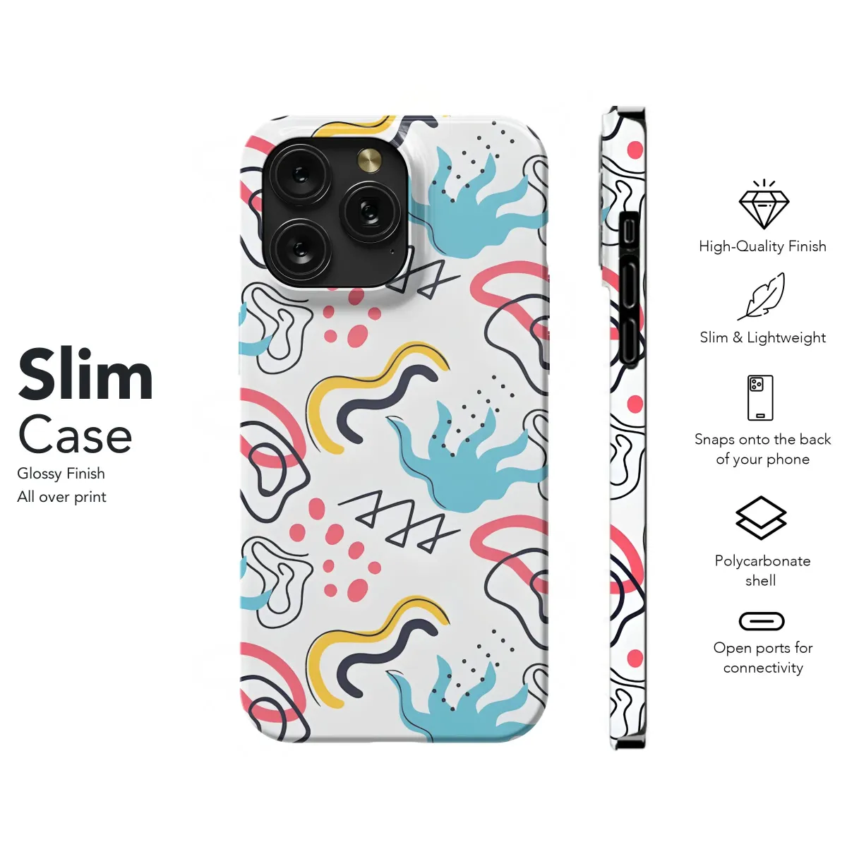 Elevate your everyday tech with this vibrant and playful abstract design, a burst of modern art crafted for your handheld device. Featuring a captivating collage of bold shapes, whimsical squiggles, and lively dots in a harmonious blend of blue, yellow, coral, and black against a clean backdrop, this eye-catching artwork adds a splash of personality to your daily life. Ideal for trendsetters and art enthusiasts alike, this pattern brings a touch of contemporary flair to your mobile companion, making it a true statement piece. Perfect for those who appreciate unique and expressive designs, this artistic creation transforms your device into a stylish accessory, reflecting your individual taste and love for all things creative. Let your device become a canvas with this modern art-inspired graphic, a testament to your distinctive style and appreciation for visual delight. Add a pop of color and artistic charm to your digital world today with this must-have aesthetic tech accessory!
