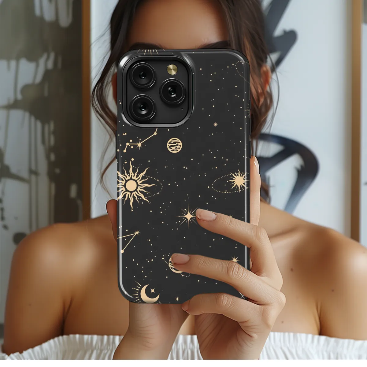 Unleash your enigmatic aura with this Abstract Esoteric Ornament Phone Case. Immerse yourself in a realm of cryptic symbols and intricate designs that evoke ancient mysteries and boundless possibilities. Its durable construction safeguards your device, while its captivating allure transforms it into an extension of your spiritual journey. Enchant your phone and embrace the allure of the unknown with this exquisite accessory.