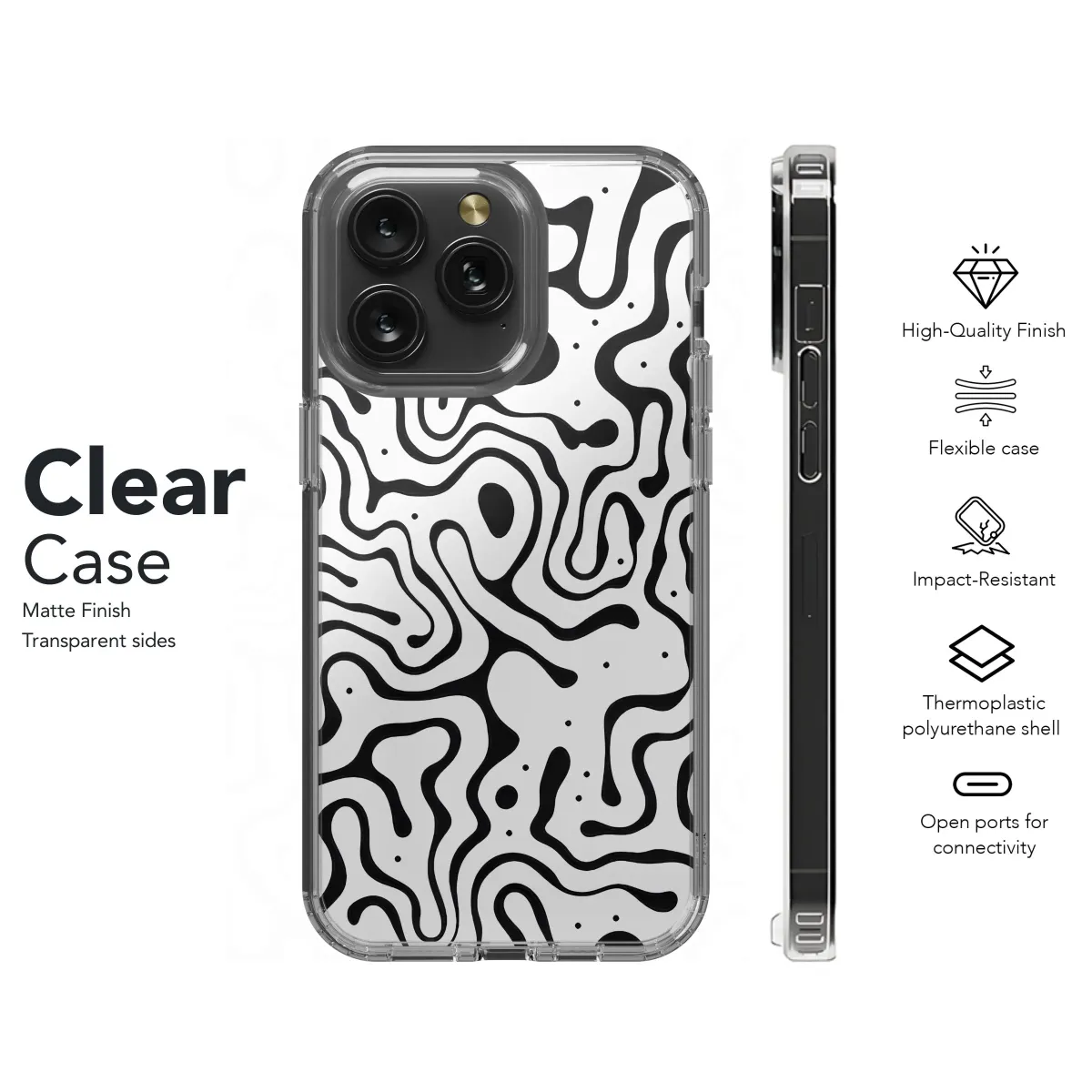 Discover this captivating abstract pattern, a seamless flow of bold black lines and subtle dots dancing across a crisp white background. Inspired by organic forms and fluid movement, this striking monochrome art piece brings a sophisticated, modern aesthetic to your personal items. The dynamic, wavy shapes create a sense of energy and intrigue, perfect for those who appreciate unique artistic expression and contemporary style. This design is more than just a visual; it's a statement piece, transforming a simple accessory into a piece of portable art that reflects your individual style and personality. Whether you lean towards minimalist design or love eye-catching patterns, this versatile print offers a compelling appeal that complements various looks and moods. Imagine carrying this intriguing artwork with you daily, adding an instant touch of modern elegance and distinctive flair to your handheld technology. The intricate details and high contrast ensure the pattern stands out beautifully, making your everyday digital companion uniquely yours and a conversation starter. This design is prepared for high-quality printing, capturing every nuanced curve and dot of the original art with sharp clarity and vibrant detail. It's an ideal choice for anyone seeking distinctive, visually rich patterns to adorn their most used devices, merging artistic form and functional flow in perfect harmony. Embrace this compelling, abstract masterpiece to elevate your personal tech aesthetic and make your mark. This pattern offers a unique blend of simplicity and complexity, timeless yet utterly modern, ensuring your chosen item possesses a truly artistic edge. Add this fluid, artistic touch to your essential gear and carry a piece of modern art wherever you go.