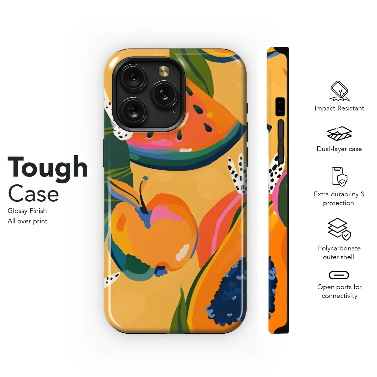Dive into a whimsical realm where vibrant hues dance across your phone. Adorned with an abstract burst of fruity and floral patterns, this phone case is a vibrant masterpiece that will transform your device into a work of art. Its dynamic design captures the essence of nature's abundance, creating a mesmerizing canvas for your daily essentials. Each brushstroke and swirl is a testament to the boundless creativity that exists within.