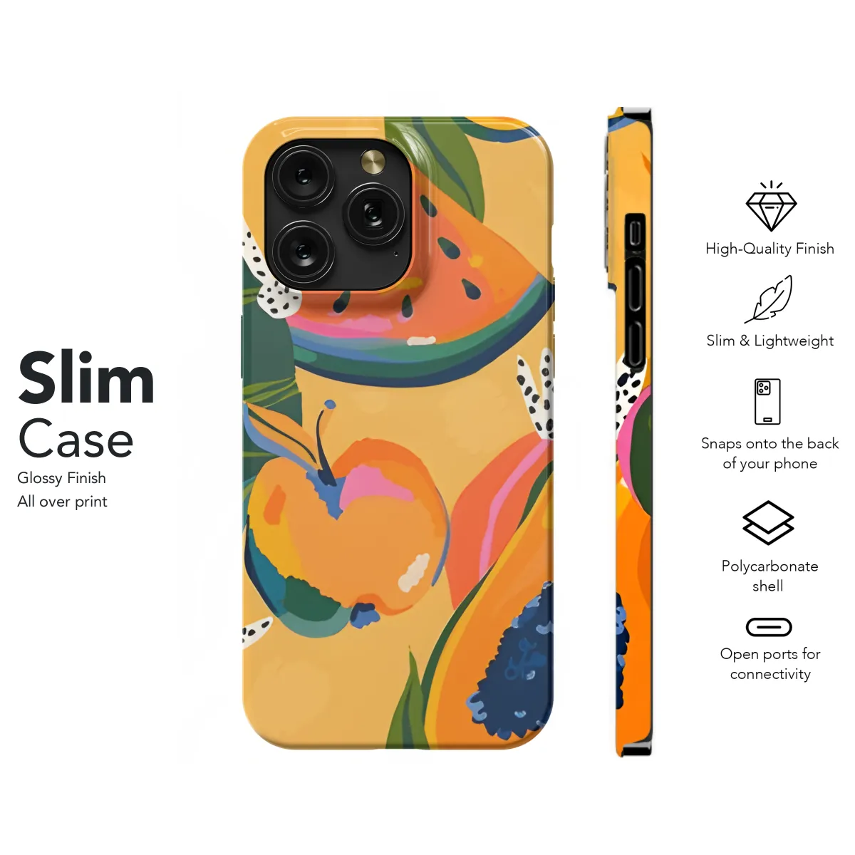 Dive into a whimsical realm where vibrant hues dance across your phone. Adorned with an abstract burst of fruity and floral patterns, this phone case is a vibrant masterpiece that will transform your device into a work of art. Its dynamic design captures the essence of nature's abundance, creating a mesmerizing canvas for your daily essentials. Each brushstroke and swirl is a testament to the boundless creativity that exists within.