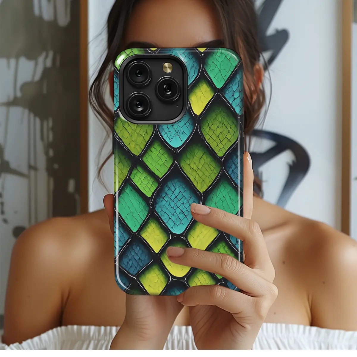 Introducing the captivating Abstract Snake Skin Neon Phone Case, a perfect blend of style and protection for your precious iPhone, Samsung, or Pixel smartphone. This case boasts an eye-catching snake skin pattern that shimmers with vibrant neon hues, adding a touch of boldness to your everyday accessory. Its sleek and form-fitting design ensures a snug fit, safeguarding your device from scratches, bumps, and everyday wear and tear. Express your unique style while keeping your smartphone protected with the Abstract Snake Skin Neon Phone Case.