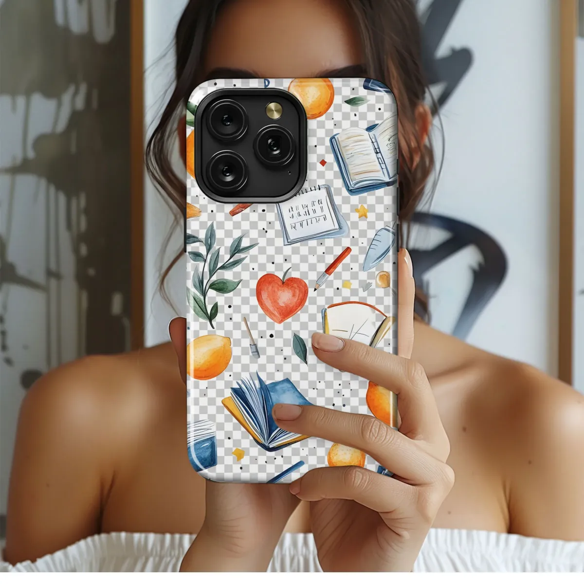 Elevate your everyday carry with this vibrant and charming watercolor pattern, ideal for adding a touch of artistry to your favorite gadget. Featuring a delightful mix of school-themed elements – from open books and notebooks to juicy apples, lemons and oranges, pencils, pens, magnifying glass, this design is perfect for students, teachers, writers, or anyone who appreciates a whimsical, educational aesthetic. The hand-painted feel lends a unique, artisanal touch, making your device stand out from the crowd. This pattern captures the essence of learning and creativity, infusing your tech accessory with personality and style. Perfect for back to school gifts, graduation presents, or simply treating yourself to a dose of inspiration, this eye-catching design is sure to spark conversations and bring a smile to your face every time you use it. Showcase your love for knowledge and creativity with this unique and stylish watercolor pattern; it's a perfect blend of artistry and functionality.