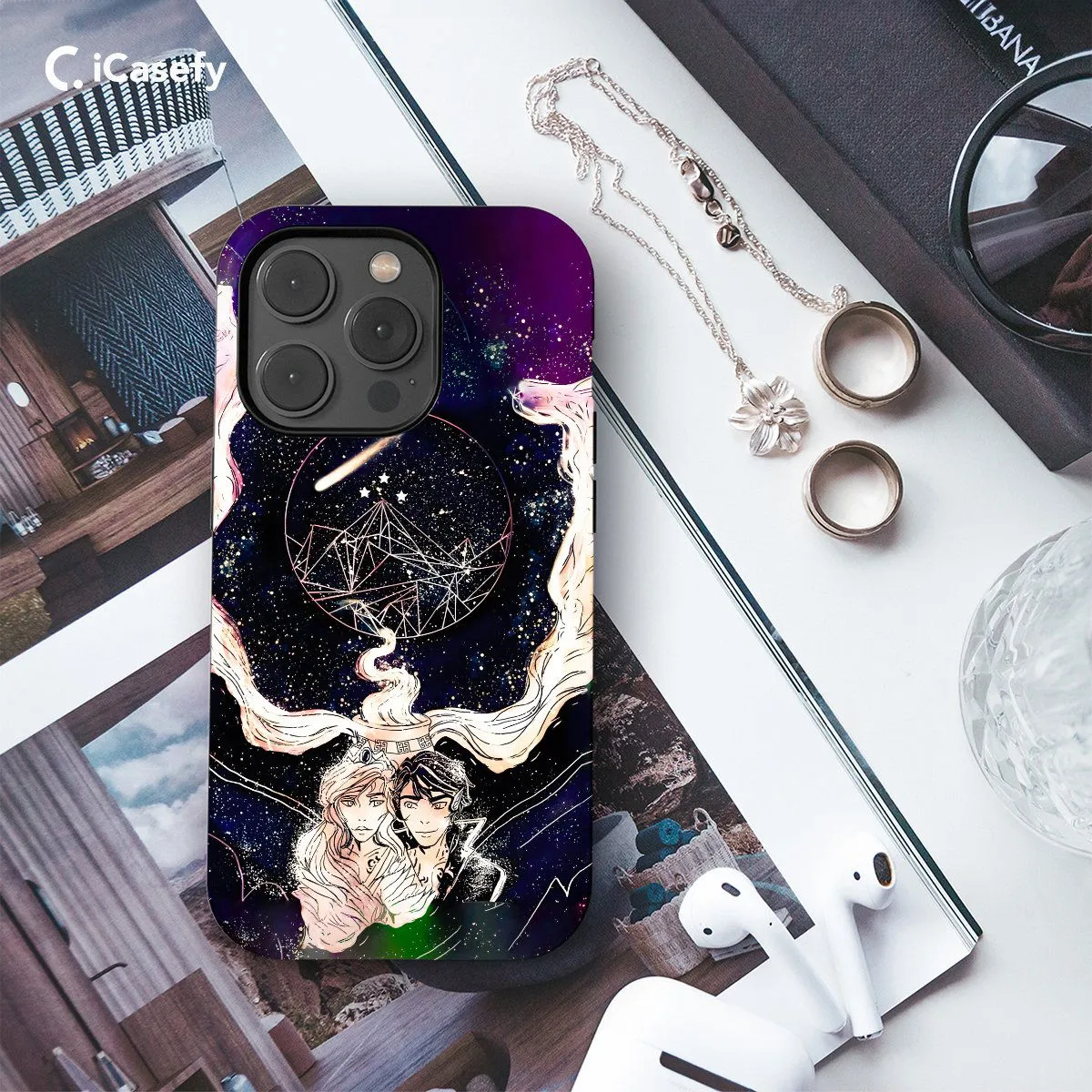 Embrace the enchantment of the Night Court with this celestial-themed phone case inspired by A Court of Mist and Fury (ACOMAF). Featuring imagery reminiscent of the night sky and symbols representing the Court, this elegant case is perfect for any fan of the ACOTAR series. Carry the magic of Prythian with you wherever you go with this stylish accessory.