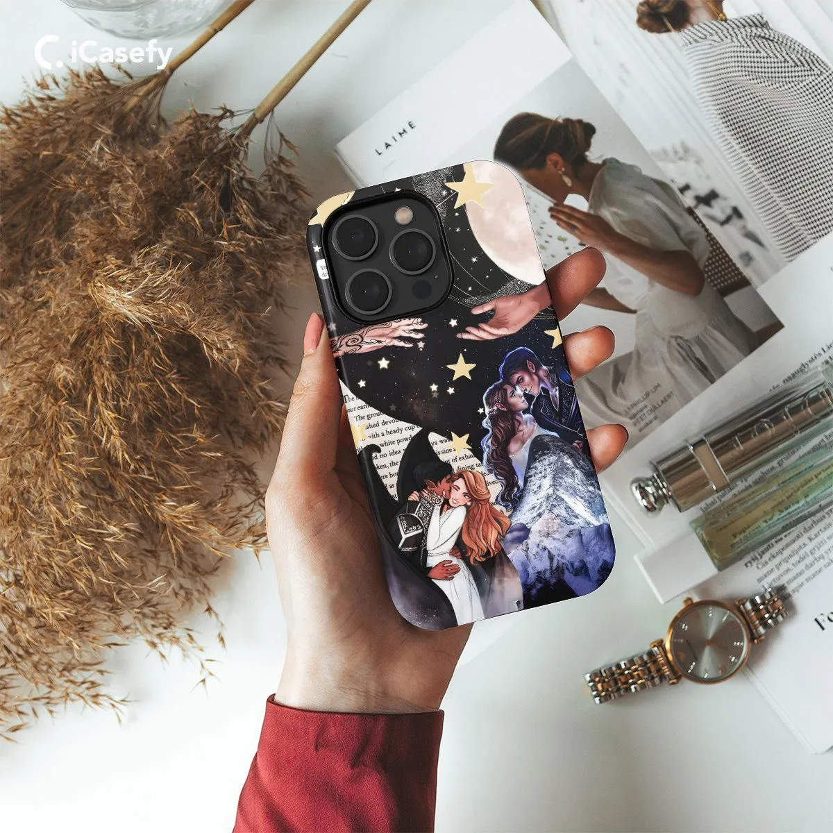 Immerse yourself in the enchanting world of ACOTAR and ACOMAF with this captivating phone case featuring a collage of scenes from Velaris, the celestial Night Court. Inspired by the mystical allure of Sarah J. Maas's novels, this case captures the beauty and magic of the Night Court's celestial realm. Carry a piece of Prythian with you wherever you go and let your device reflect your love for the captivating world of ACOTAR.