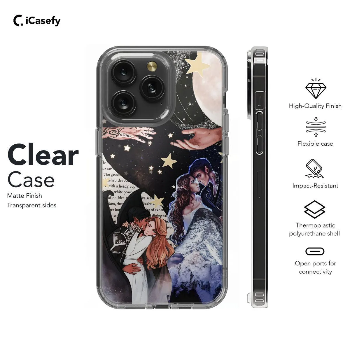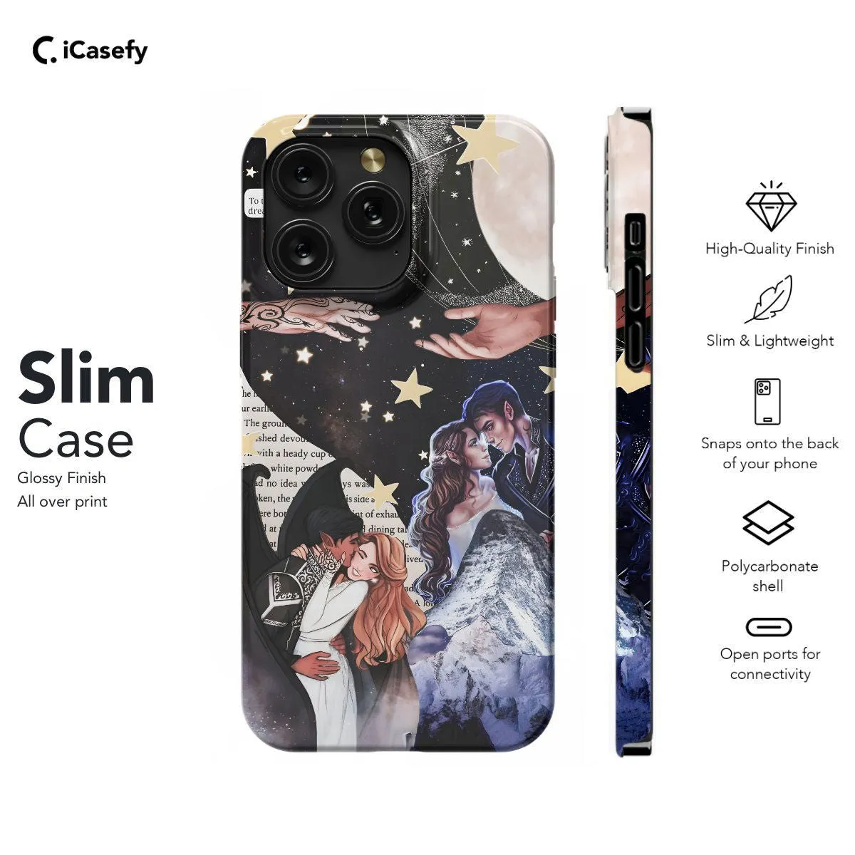 Immerse yourself in the enchanting world of ACOTAR and ACOMAF with this captivating phone case featuring a collage of scenes from Velaris, the celestial Night Court. Inspired by the mystical allure of Sarah J. Maas's novels, this case captures the beauty and magic of the Night Court's celestial realm. Carry a piece of Prythian with you wherever you go and let your device reflect your love for the captivating world of ACOTAR.
