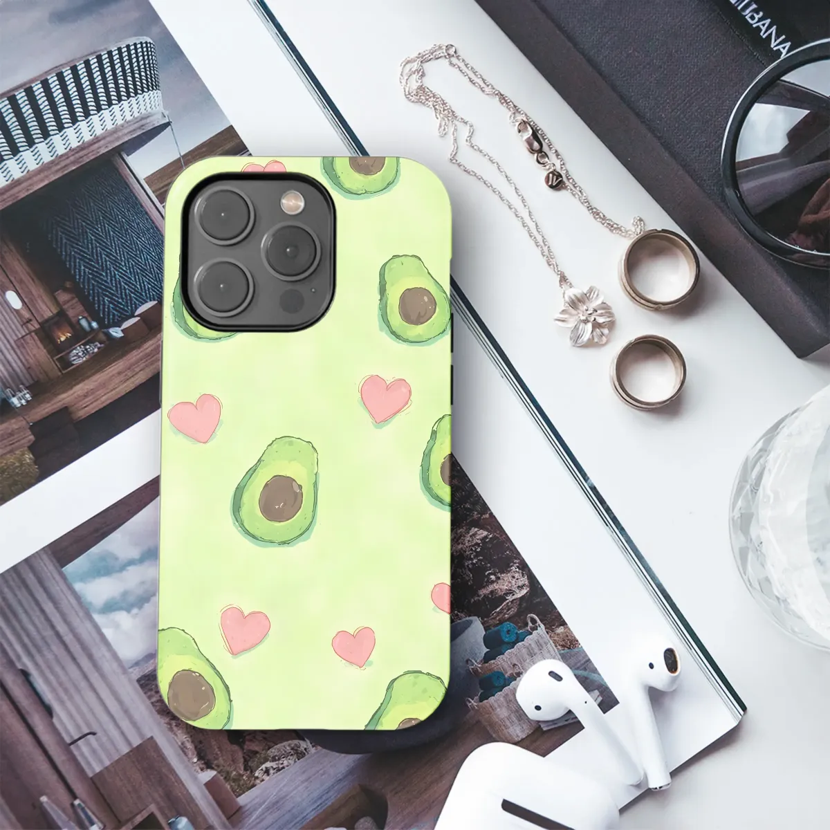 Wrap your everyday essentials in a hug of pure cuteness with this charming avocado and heart pattern. Imagine a field of soft, lime green where delightful, hand-drawn avocados happily float, each one a creamy, vibrant celebration of nature's best. Scattered amongst them are whimsical, blush-pink hearts, doodled with love and adding a pop of sweet affection to the design. The gentle watercolor texture gives the artwork a soft, dreamy quality, as if it were painted on a sunny afternoon. This design is more than just a pattern; it's a feeling—a little reminder to find joy in simple things and to share your love. Perfect for the foodie with a flair for style, the health-conscious friend, or anyone who adores a pastel aesthetic, this lovely illustration brings a dose of cheerful energy and undeniable charm wherever it goes. Let this sweet avocado art brighten your day and add a sprinkle of happiness to your personal style. It’s an ideal gift for a loved one or a wonderful treat for yourself, embodying a perfect blend of modern trendiness and timeless, heartfelt appeal.
