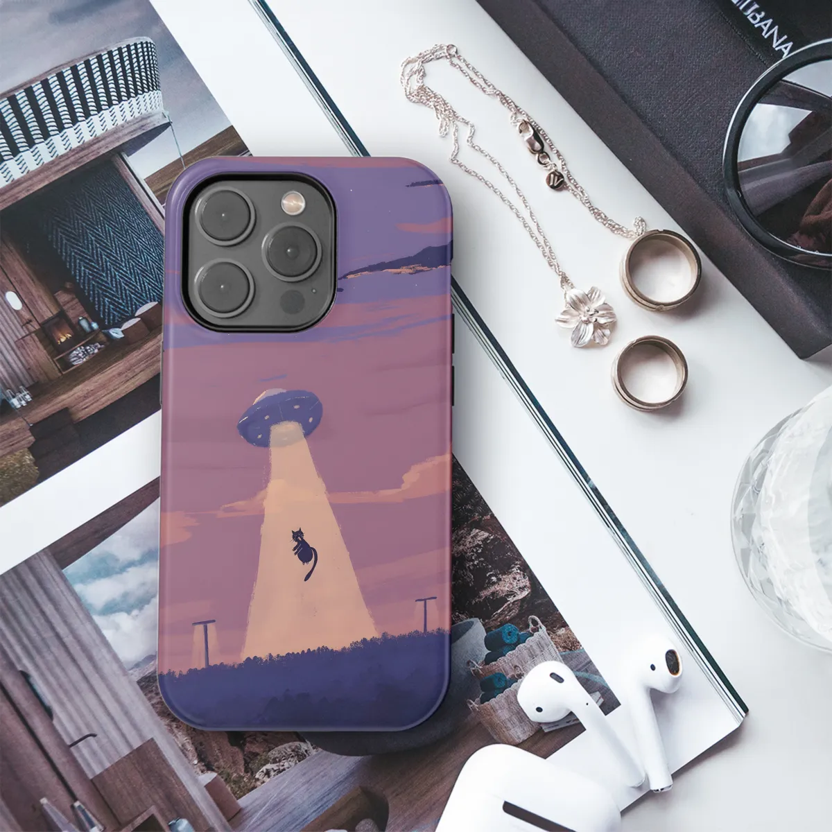 Beam yourself up with this out-of-this-world phone case featuring an alien kitty abduction! Designed for your iPhone, Samsung, or Pixel smartphone, this protective case is the purr-fect way to keep your device safe from earthly threats. Crafted with a durable material, it shields your phone from scratches, bumps, and even those pesky cat claws. Plus, the eye-catching artwork will make your phone the envy of all UFO enthusiasts and cat lovers alike. So, don't wait – order your Alien Cat Abduction Phone Case today and let the cosmic adventure begin!